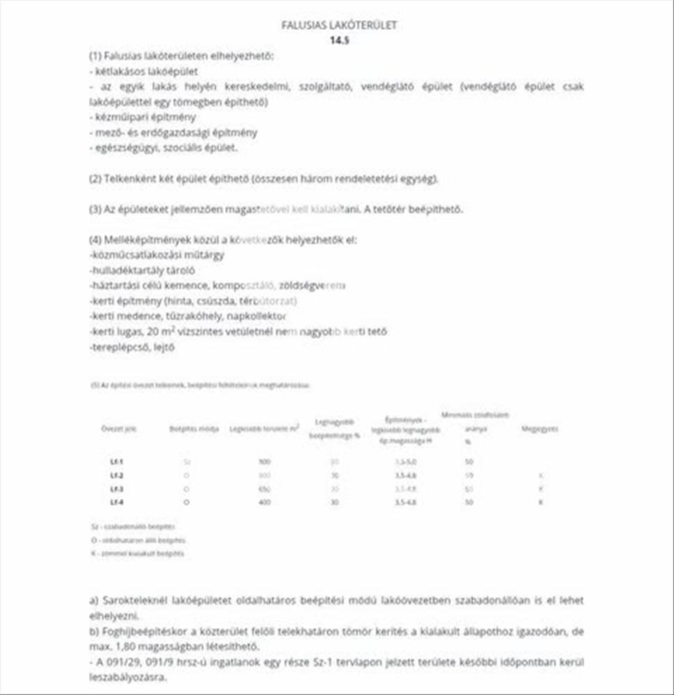 33. Falusias lakóterület (Lf) általános előírásai