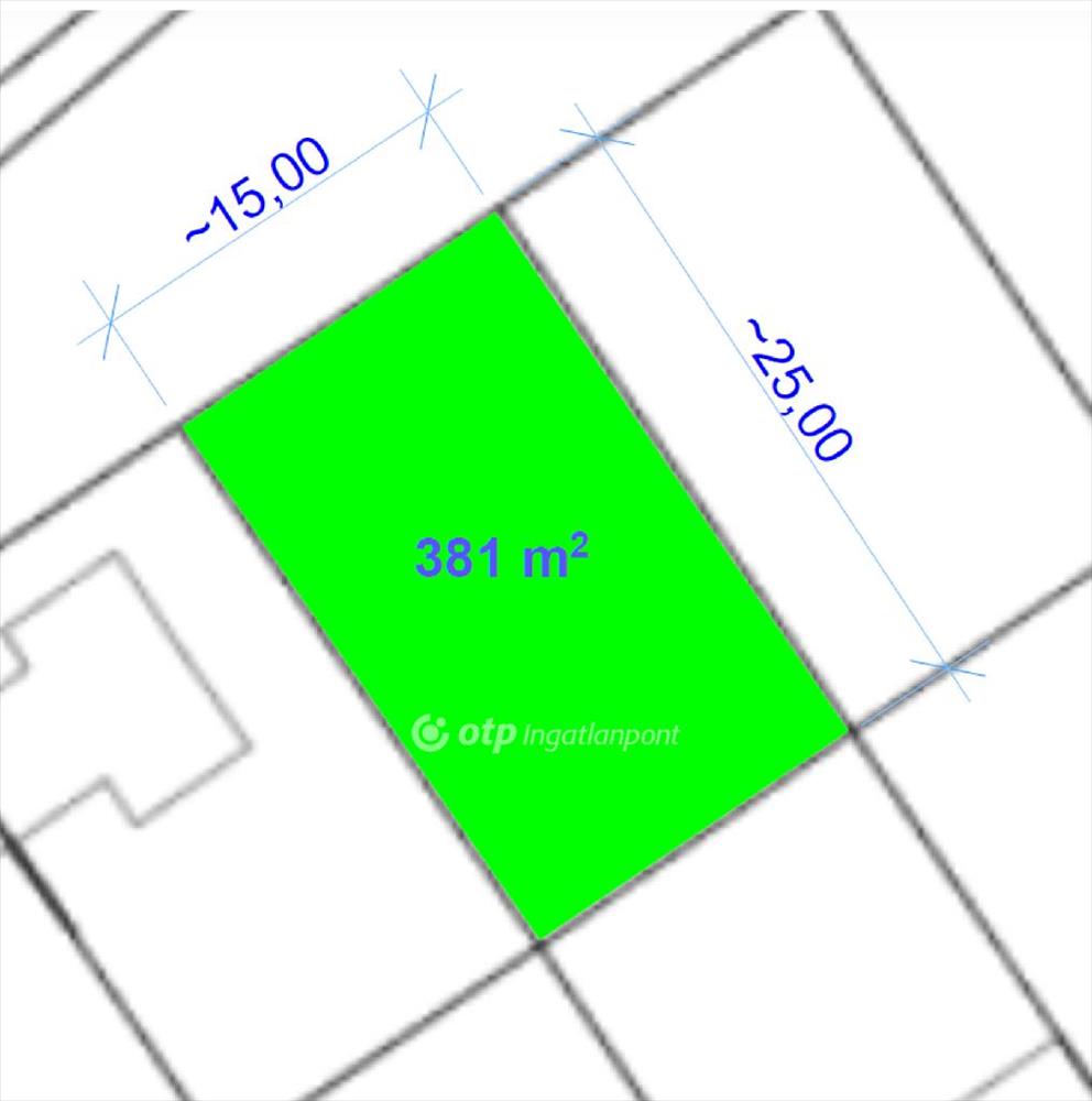 A telek szélessége: kb. 15 M, hosszúsága: kb. 25 M, 3 irányból körbekerített.