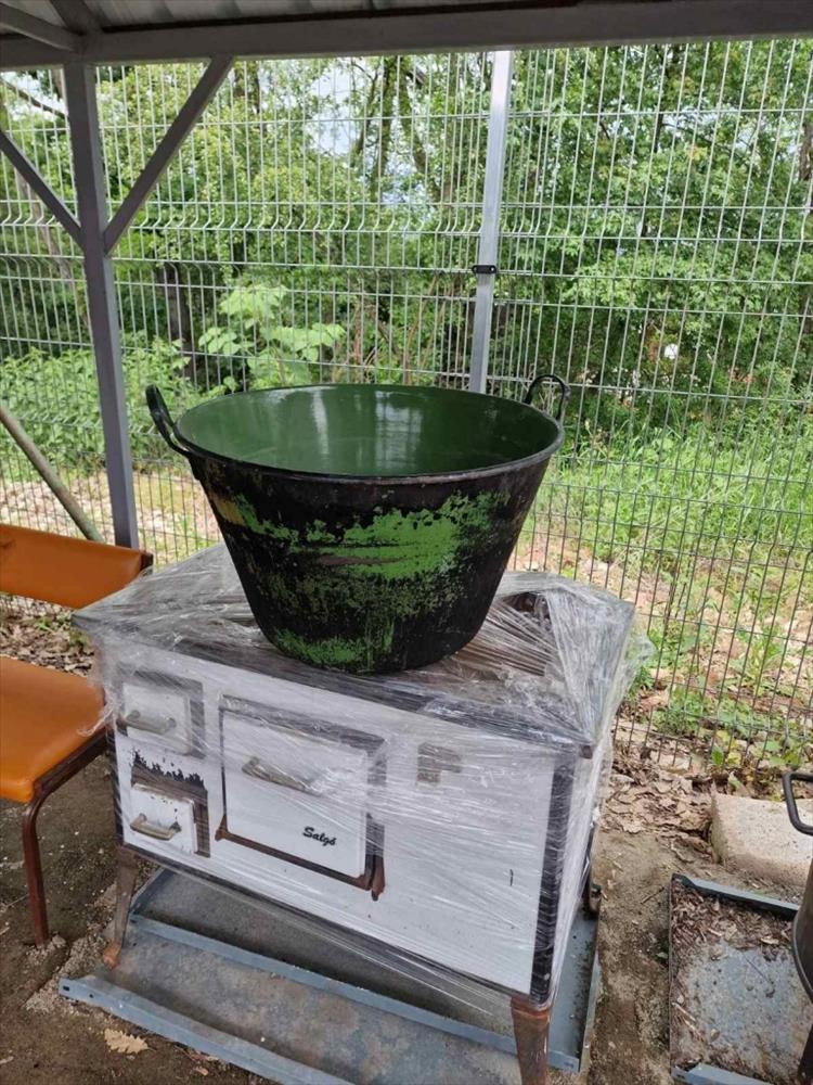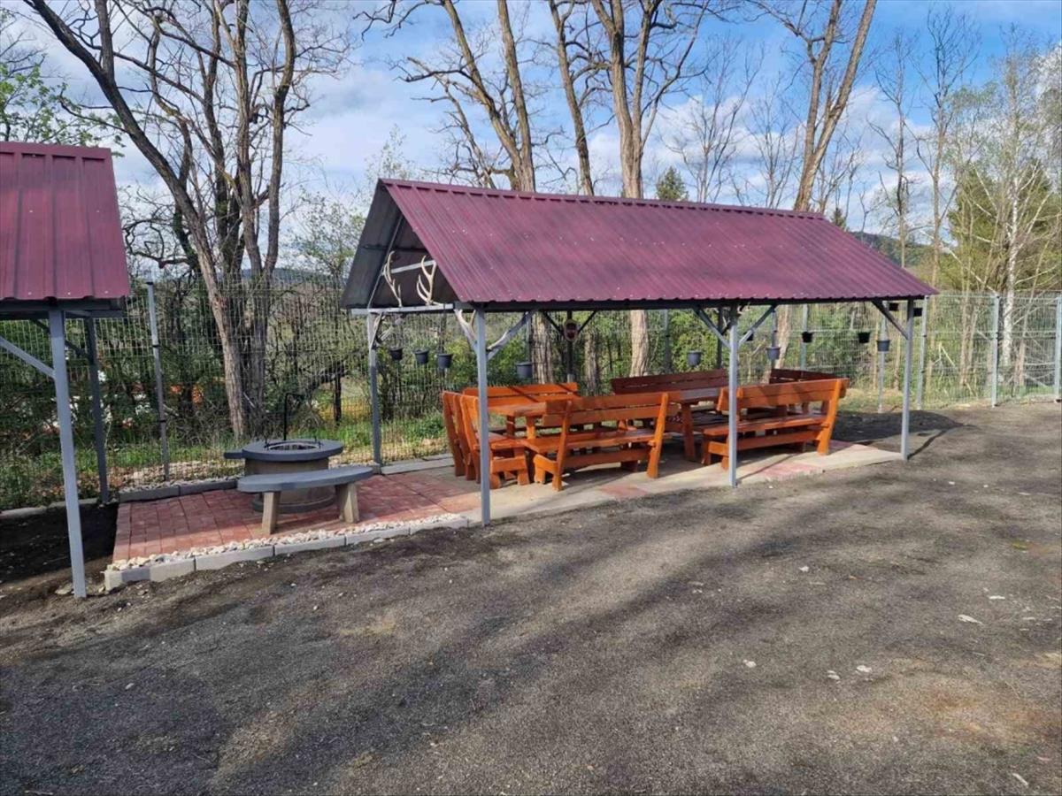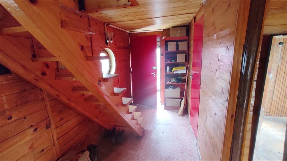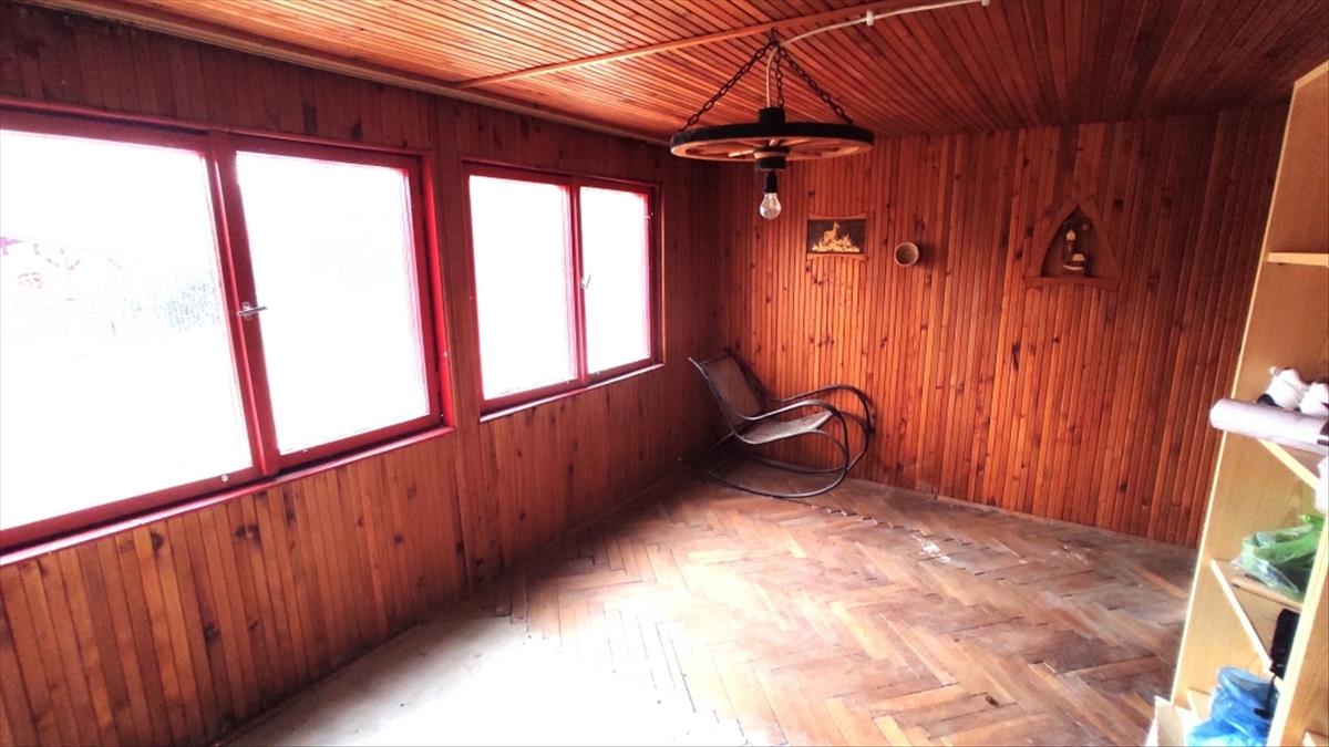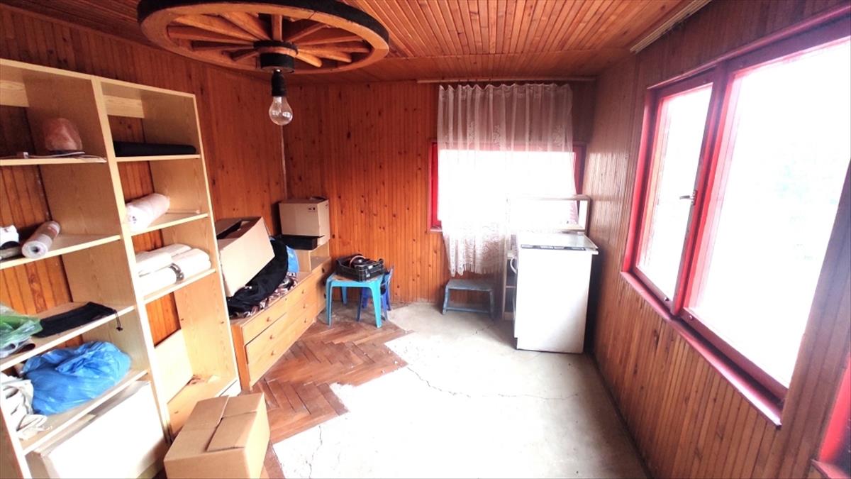 Az ingatlanon egy kő alapzatú, három plusz egy szintes, felújítandó erkélyes faház -többek közt-fürdőszobával és garázzsal, további három darab mobil garázs+ két fedett pihenőhely található.