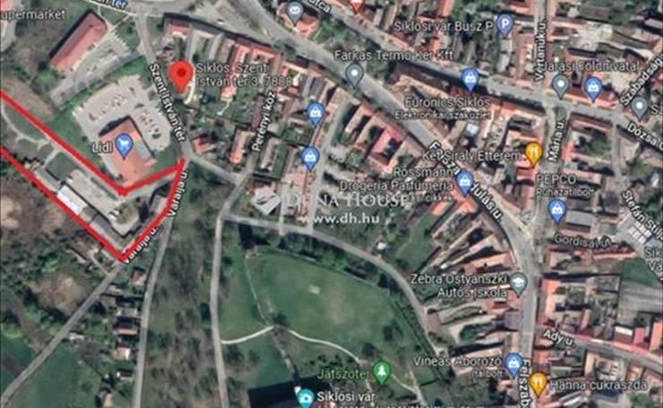 A siklósi Vár és a Lidl között a belvárosban 8662 nm sík épitési telek eladó! Áram, víz , csatorna a telken, gáz az utcában.
