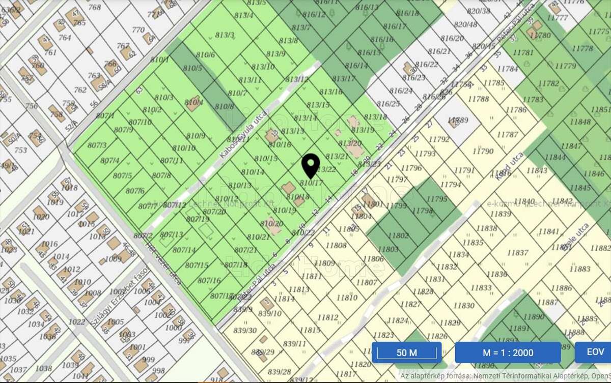 Sóstói nagystrandtól gyalog 15 percre, a Péter-Pál u. - Hétvezér u. Saroktól hat telekre a Péter-Pál utcában eladó egy nagyon jó ár/érték arányú, szilárd burkolatú úton megközelíthető, három oldalról bekerített 376 m2-es sík fekvésű építési telek. Csatorna, víz, villany mérőkkel a telken. Az ingatlan osztatlan közös tulajdonban álló földrészlet önálló megközelítéssel bíró egyik fele, amely a hirdetéshez mellékelt vázrajzon sárga színnel jelölt telekrész. Az osztatlan közös tulajdonú földrészletek használata ügyvéd által készített használati megosztásban kerül szabályozásra. a zöld színnel jelölt telekrész szintén eladó 19, 5 MFt-ért.