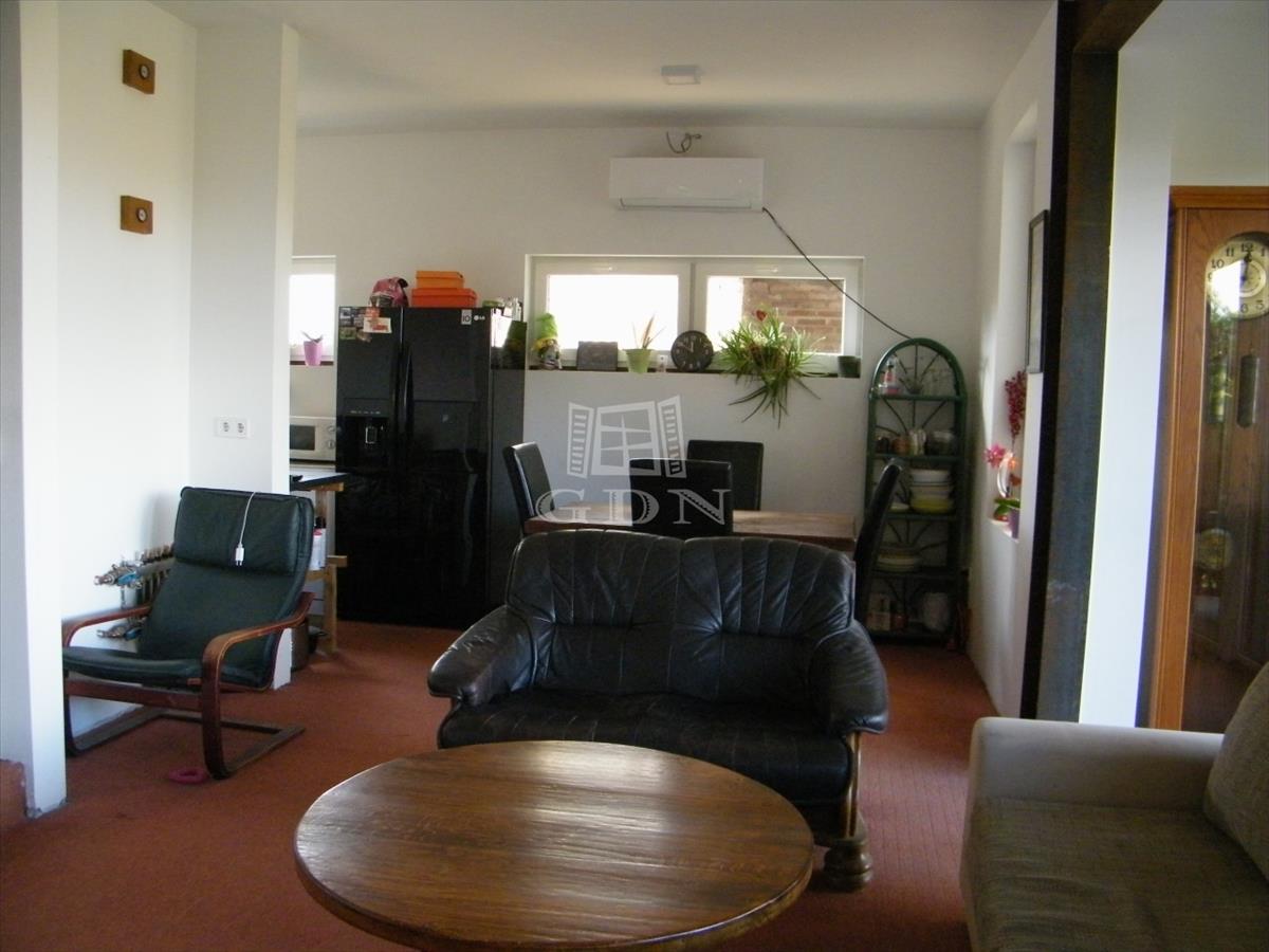 A kétszintes, 125 nm -es lakás és iroda épület helyiségei 4 szoba, két fürdőszoba, közlekedő terasz. Fűtés: padlófűtés faelgázosító kazánról, 2 hűtő-fűtő klíma; kandalló kémény kiépítve.