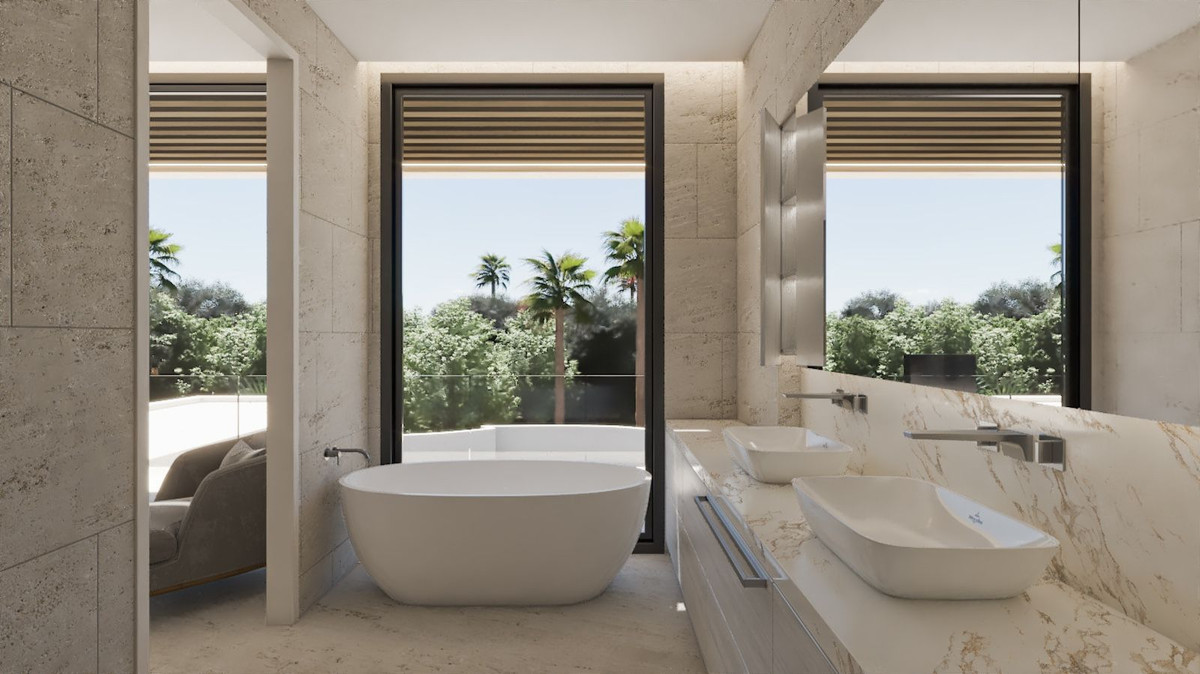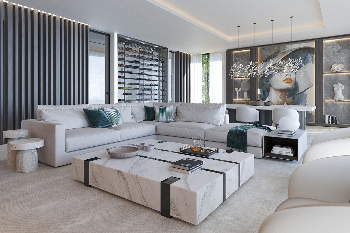 Ez a villa újradefiniálja a mediterrán élet fogalmát, amely bőkezű beltéri és kültéri tereket kínál, amelyek maximális kényelmet és magánéletet biztosítanak.