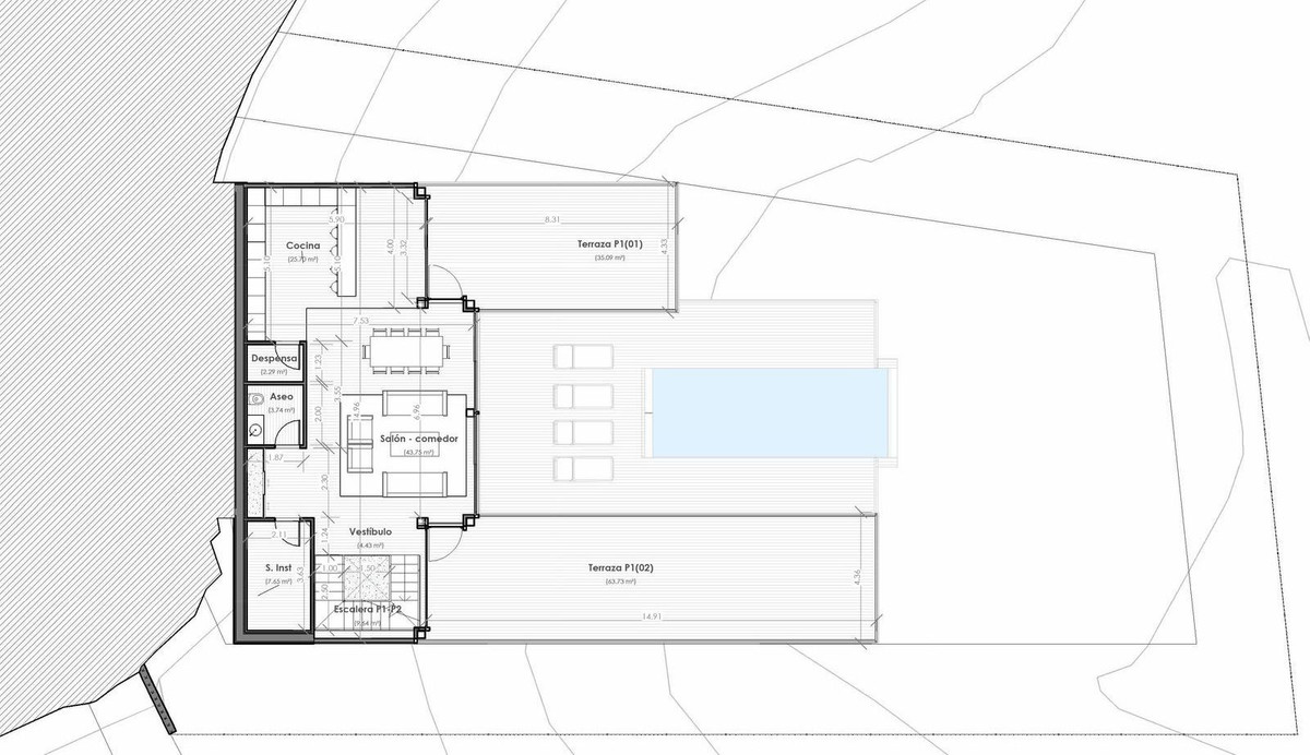 Épület: 25%, tökéletes egy személyre szabott otthon építéséhez, kertek, úszómedence és szabadidős területek számára.