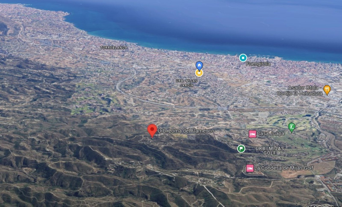 885m2 telek Loma del Flamenco, egy terület nagy vetítés közelében golfpályák, körülvéve hegyek és természet, de könnyen megközelíthető 10 percre Fuengirola és 25 Malaga repülőtér. a helyszín délnyugat.