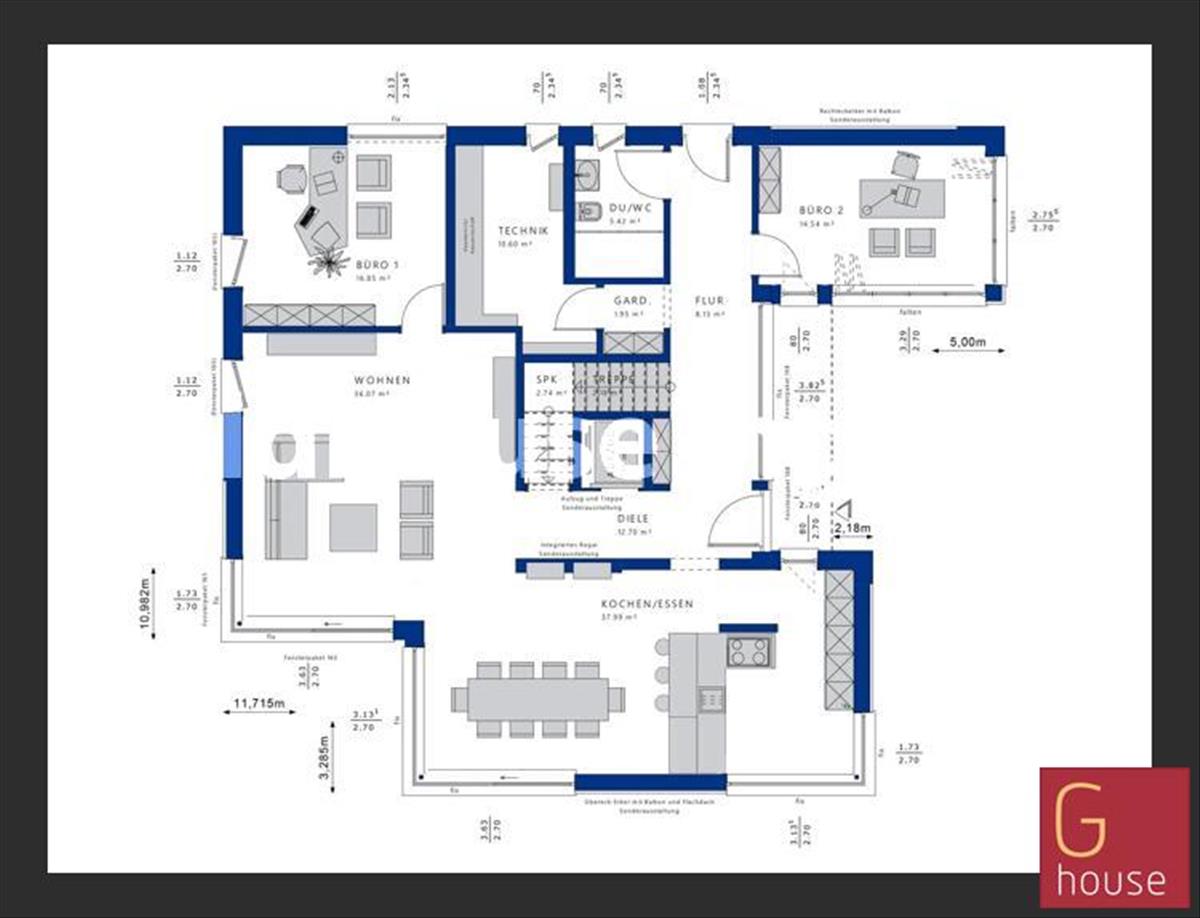 A telek 10%-a építhető be, 4, 5 méter magasságú, 2 emeletes épület építhető rá.
