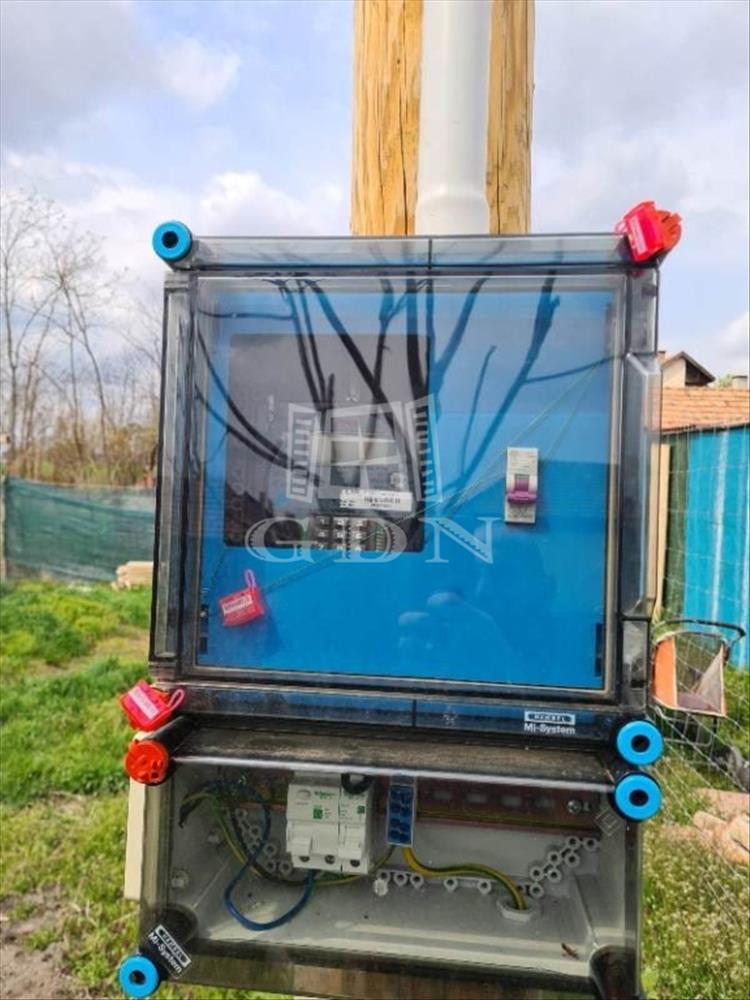 A teleken belül van az áram (feltöltő kártyás villanyóra), a víz a gáz és a csatorna a telek előtt van.