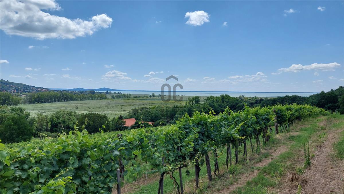 Kivételesen szép fekvésű (dél, délkeleti fekvésű, enyhe lejtésű) panorámás telek, művelt bőtermő szőlővel.