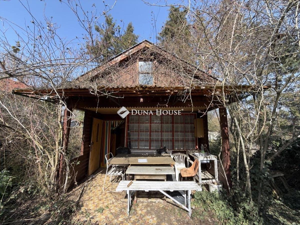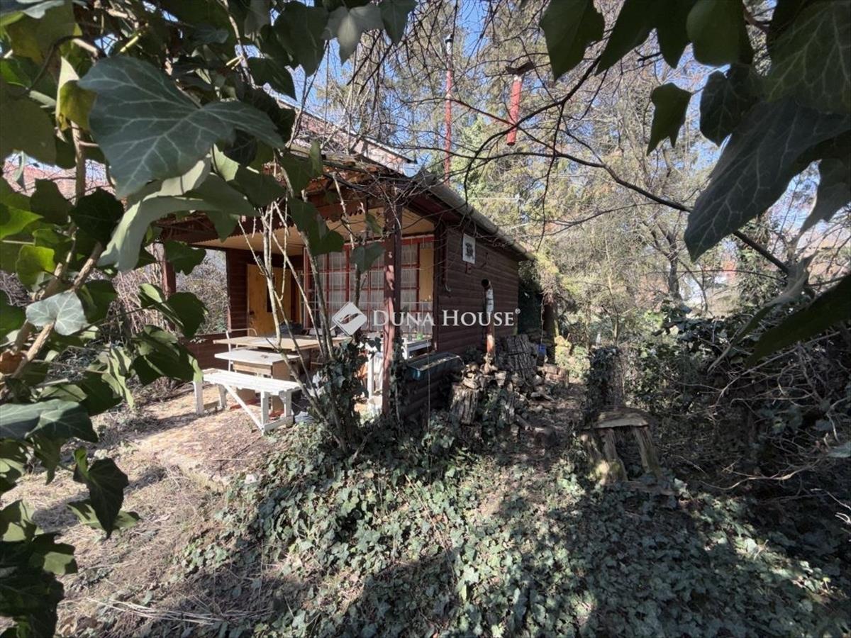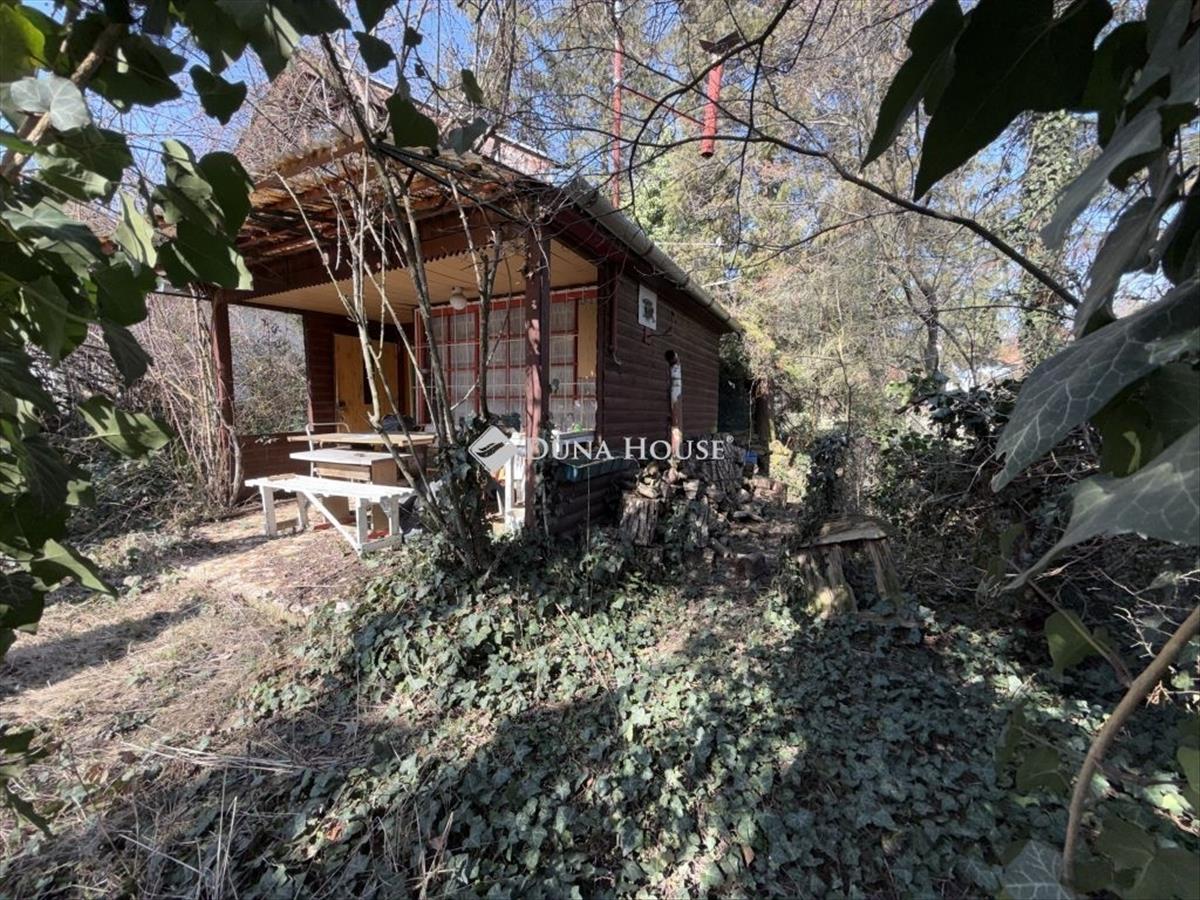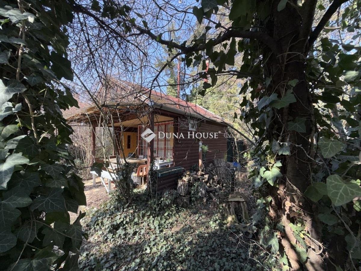 A körbekerített, vadregényes telken egy komfort nélküli, kb. 18 Nm-es alapterületű, vörösfenyőből épült házikó van.