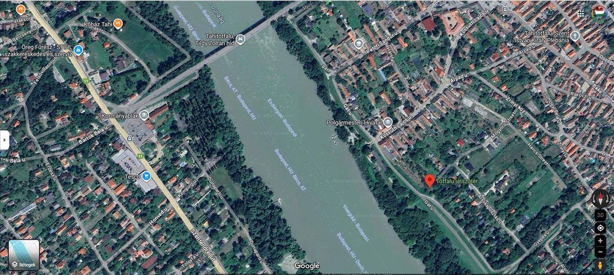 Eladó Tahitótfalu szigeti részén, a Duna karnyújtásnyi közelségében, de árvízmentes területen egy 996 m²-es, sík építési telek, 17, 9 méteres utcafronttal.