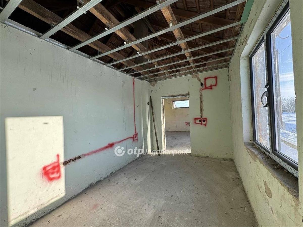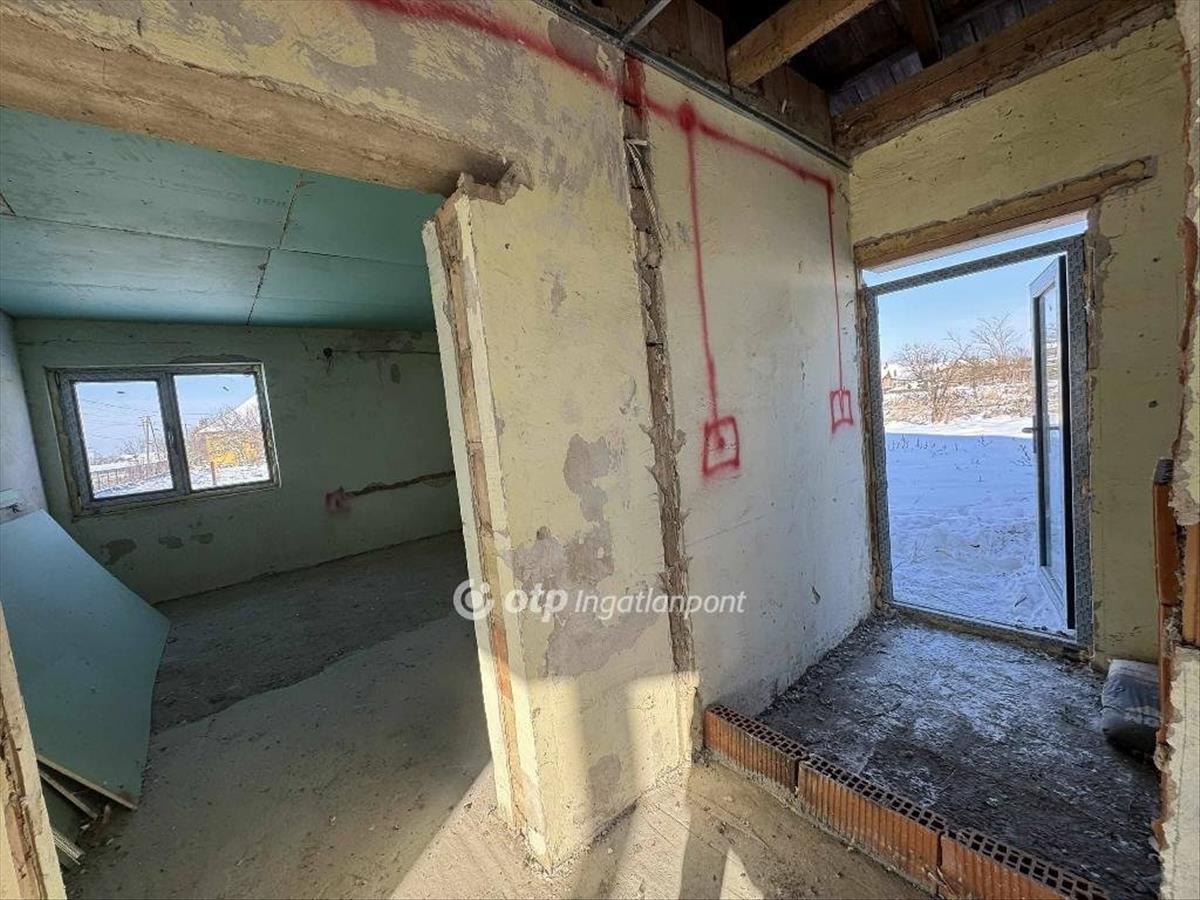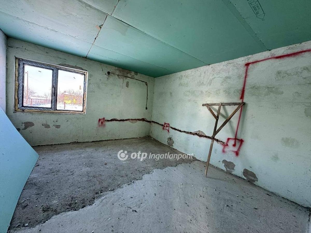 Az 59 négyzetméteres ház szinte készen van, de mivel nem lett még befejezve a folyamat telekként értékesítendő, illetve a tulajdoni lapon is így jelenik meg.