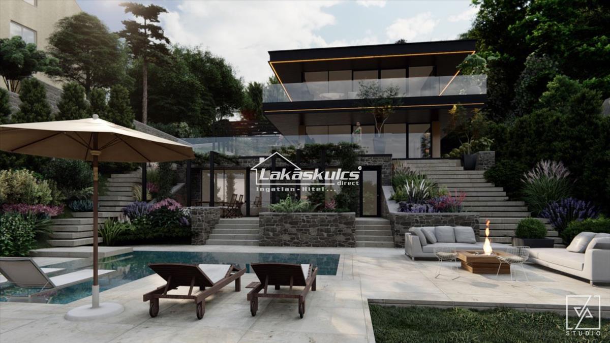 A tervek szerint a déli tájolású, teraszos telek felső részére került a 3 szintes, lapostetővel fedett épület. Az adottságok legkedvezőbb kihasználásáért a felső szintre került 75 nm -es nappali, az azt körülölelő 52 nm -es erkéllyel. a középső szinten 3 hálószoba saját fürdőkkel és gardrobbal, valamint 86 nm -es terasz. Az épület alsó szintje kertkapcsolatos, ahol a gépészeti és egyéb praktikus helyiségek mellett akár komplett, külön bejáratú lakás és/vagy komoly wellness részleg is kialakítható.