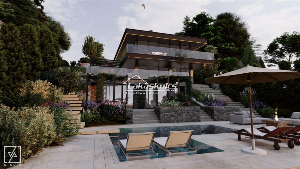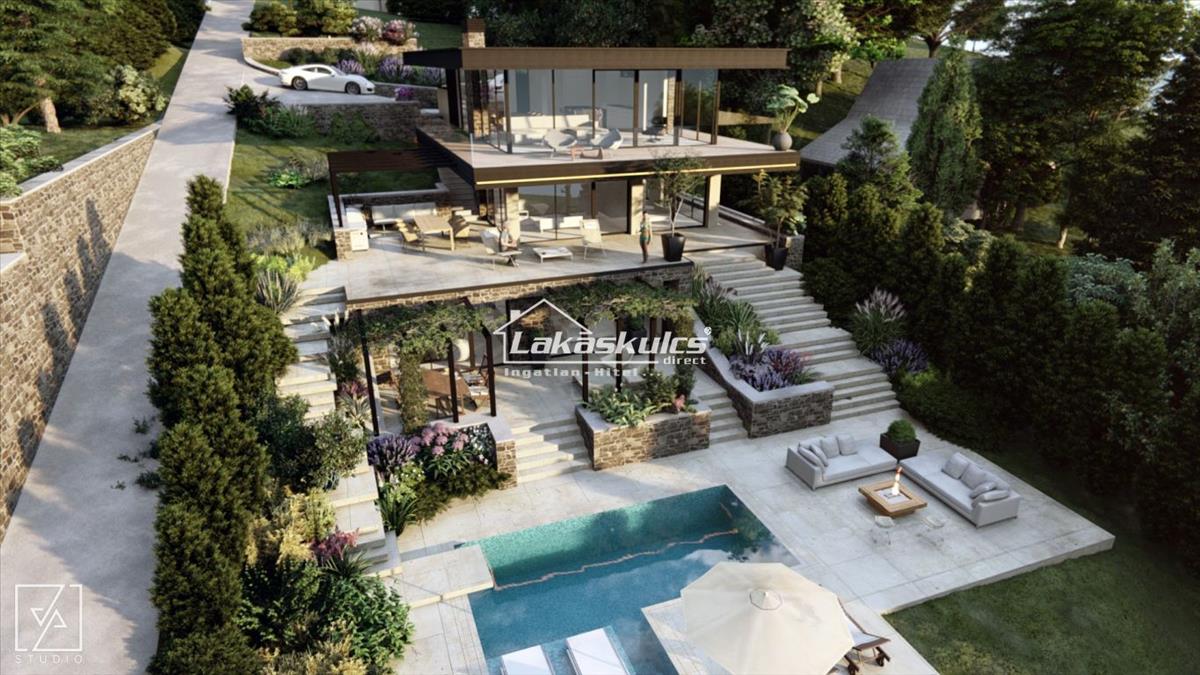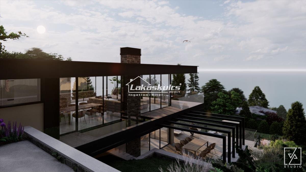 A tervezett épület hasznos alapterülete 3 szinten: 444 nm , mely átgondolt tervezéssel, a Balatoni kilátásra fókuszált, lifttel felszerelt, luxus igényekhez alakított. Küllemében abszolút modern, hatalmas üvegfelületekkel, óriás erkélyekkel, mely kiválóan illeszkedik a hely különleges milliőjébe. a homlokzatra tervezett világos földszínek tihanyi terméskővel kiegészítve, az árnyékolókon lévő motívumok, madárvédő üvegezés szépen harmonizál a környező beépítéskkel.