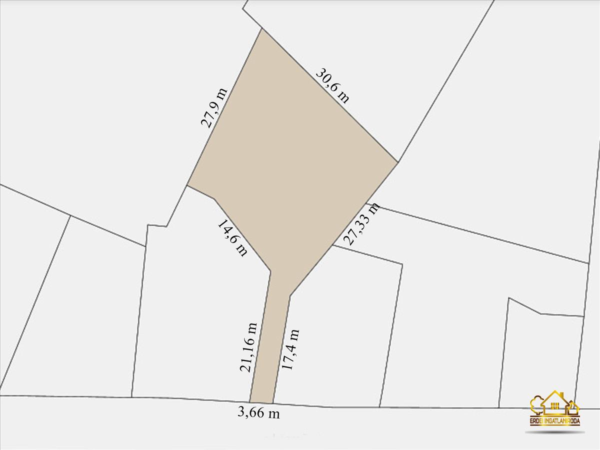 Eladó Tököl belvárosában egy 782 m²-es nyeles telek. Nyél szélessége 3, 65 m.