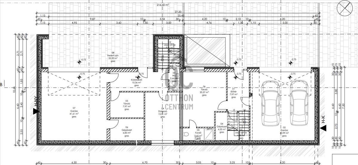 -utcafronti szélessége ~23, 0 m, a telekmélység 92 m