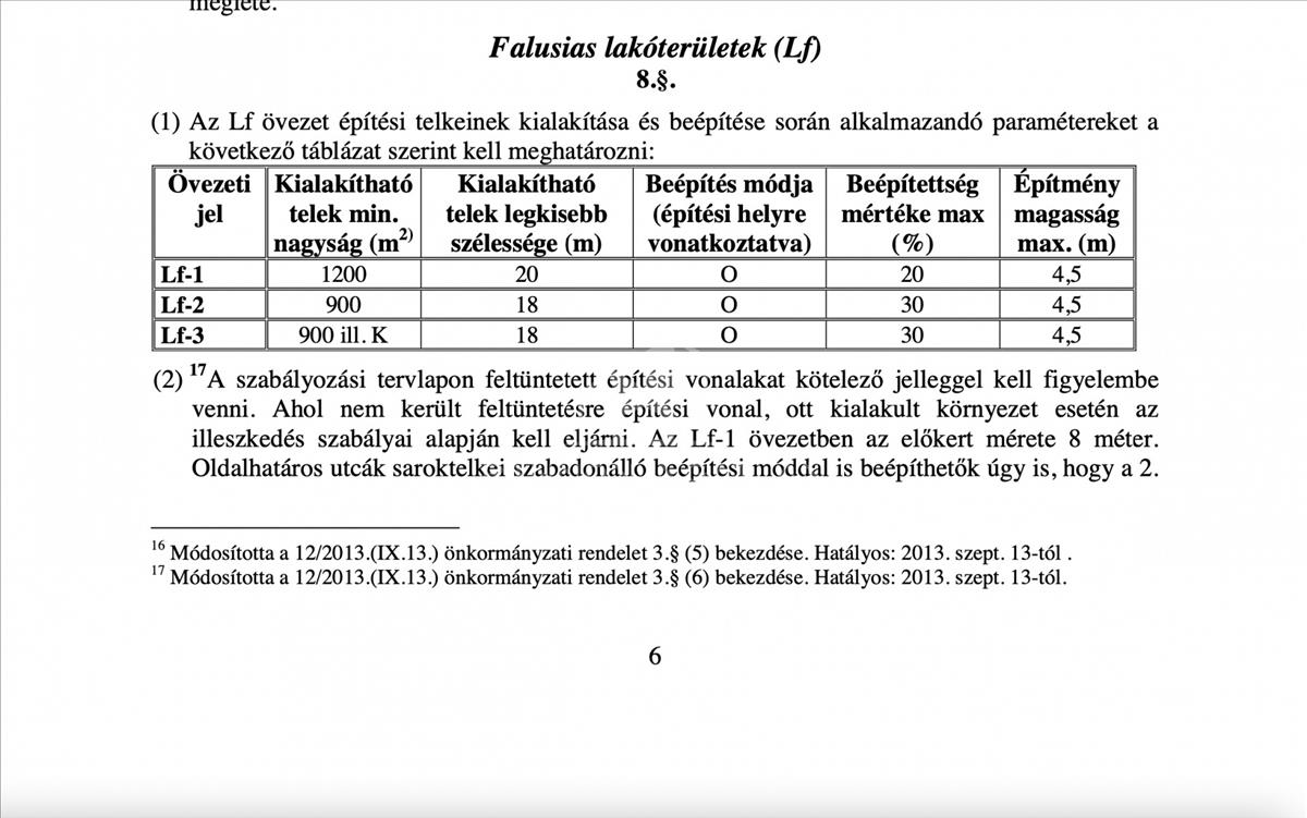 3. Az épületek csak magastetővel létesíthetők. Az építési telek épület elhelyezésére szolgáló közterülettel határos telekrészén lakóépületek és vagy a fő funkciójú épületek fő tömegét meghatározó tető hajlásszöge 38o-nál alacsonyabb, 45o-nál meredekebb nem lehet. Égetett agyagcserép (natúr, piros, vörös, vörösesbarna) ill. Ahhoz színben és formában alkalmazkodó egyéb héjalás alkalmazható. Nem alkalmazható a fémlemez, és táblás fémlemezfedés, valamint az Lf-2 és Lf-3 övezetekben a bitumenes zsindelyfedés a főépületen. a hagyományos (azbeszt mentes) szürke palafedés csak az Lf-2 és Lf-3 területeinek melléképületein ill. a meglévők pótlására, felülfedésére és annak folytatásaként alkalmazható. Felülfedésként alkalmazható még a hagyományos cserép színéhez illeszkedő bitumenes zsindely, olyan táblás fémlemezfedés, mely a cserépre emlékeztető szilikát bevonatos. Lakóépületeknél kiegészítő fedésként – előtetőkre, tetőfelépítményekre – a nem csillogó korcolt lemezfedés engedélyezhető. Mellékfunkciójú épület min. 30 O-os magastetővel fedhető.