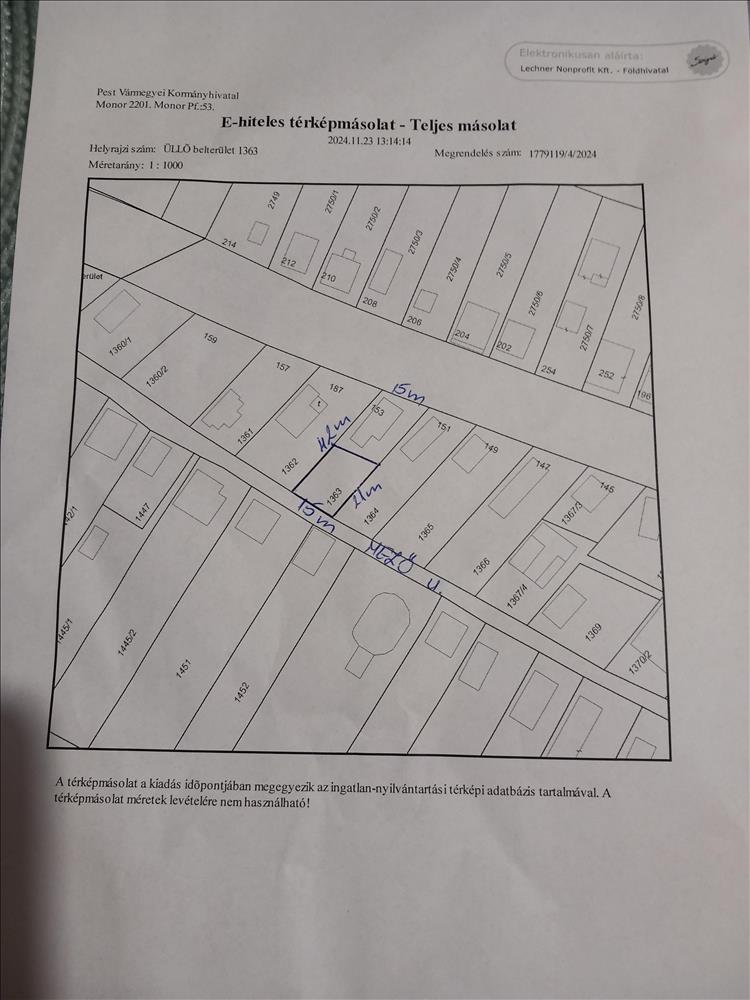 Pest megye Üllő családi házas övezetében közműves építési telek