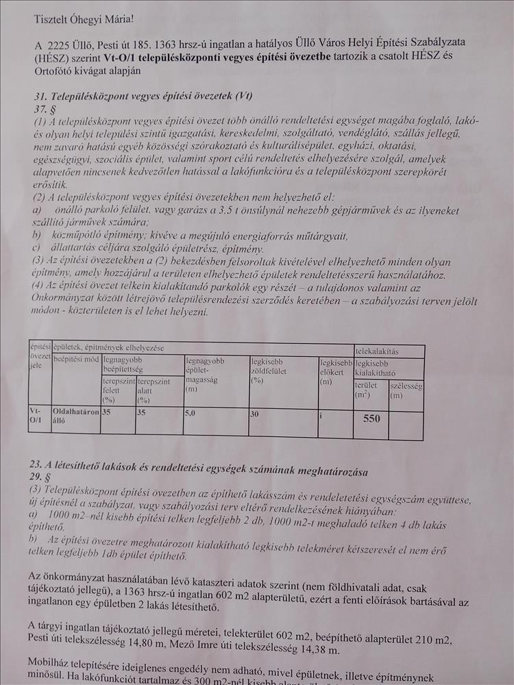 Mérete 320m2 ügyvédi megosztással kb 80-90m2-es családi ház építhető rá. Egy hrsz-on van de két utcára nyílik az ingatlan. a Mező utcára nyíló 320m2 rész eladó. Külön közművekkel és órákkal, víz, villany és csatornával. Beépíthetőség 35%. Vegyes építési övezetben helyezkedik el. Külön közművek dokumentációját csatolom. a telek üres rendezett, azonnal kezdhető az építkezés. Méretei 15 m széles és 21m hosszú. Hatályos építési szabályzat térképészeti rajz mellékelve. Csendes utcában kedves szomszédokkal. Érdeklődni Tel 36 20 558 5739 Hitel.hu - Hasonlítsa össze a bankok lakáshitel ajánlatait