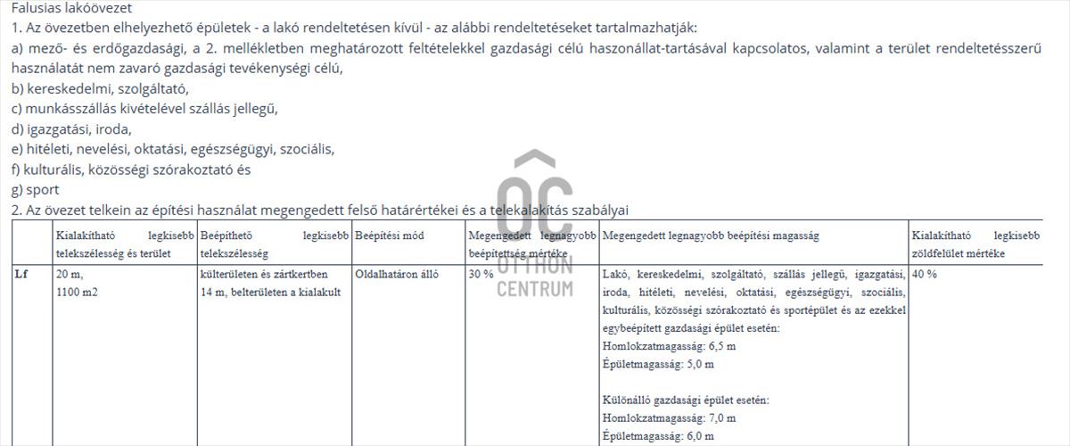 Építési övezet: Lf
