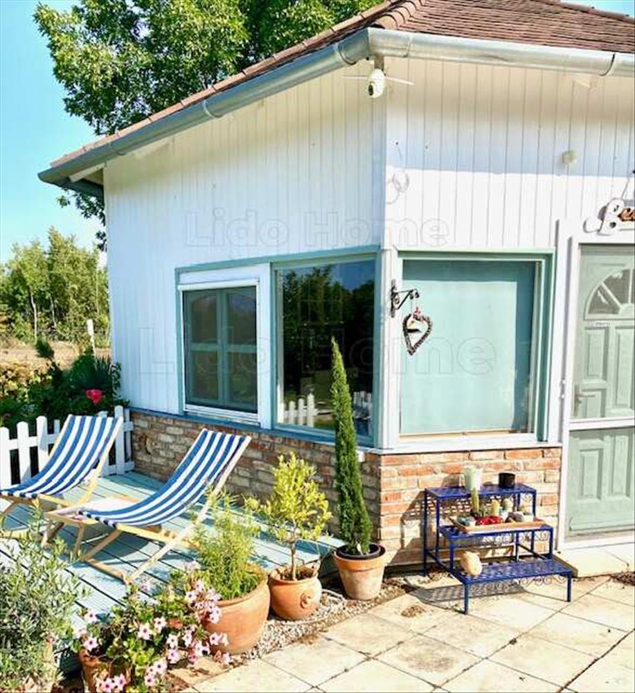 -lakóépület/nyaraló: 36 m2, továbbá üvegház, tárolók, garázs, fedett terasz, stb.