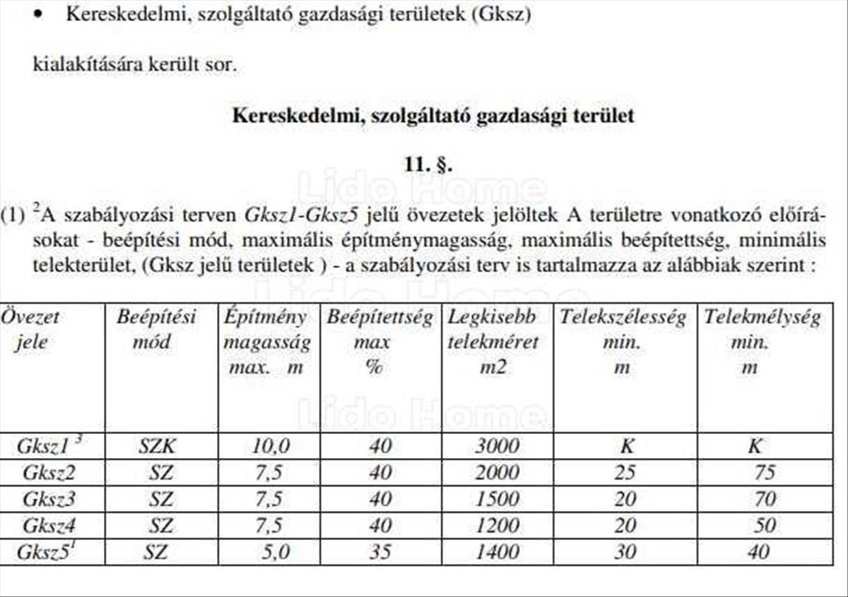 -Gksz2 övezet: kereskedelmi, szolgáltató és gazdasági terület, maximum 40% beépíthető, 7, 5 m építménymagasság