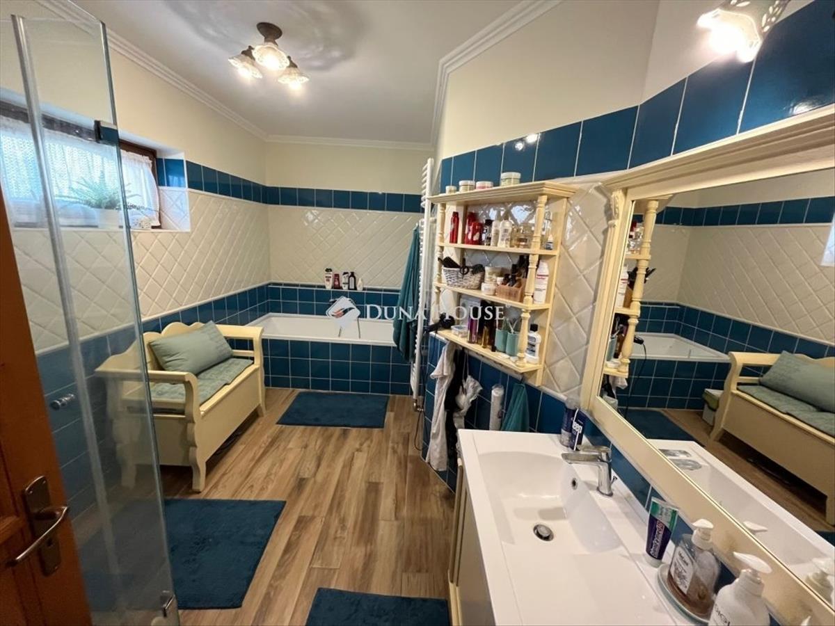 A házban tágas nappali, 3 hálószoba, 2 fürdőszoba, 2 wc, gardróbszoba, háztartási helyiség, kazánház, konyha és óriási étkező található.