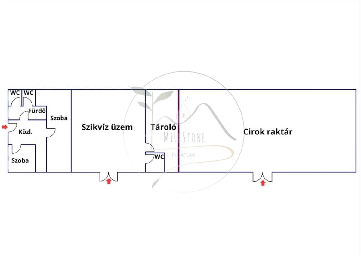 • Szódaüzem előkészítő épület, amelyhez munkásszálló is tartozik – tökéletes lehet gyártási vagy ipari tevékenységek elindítására.