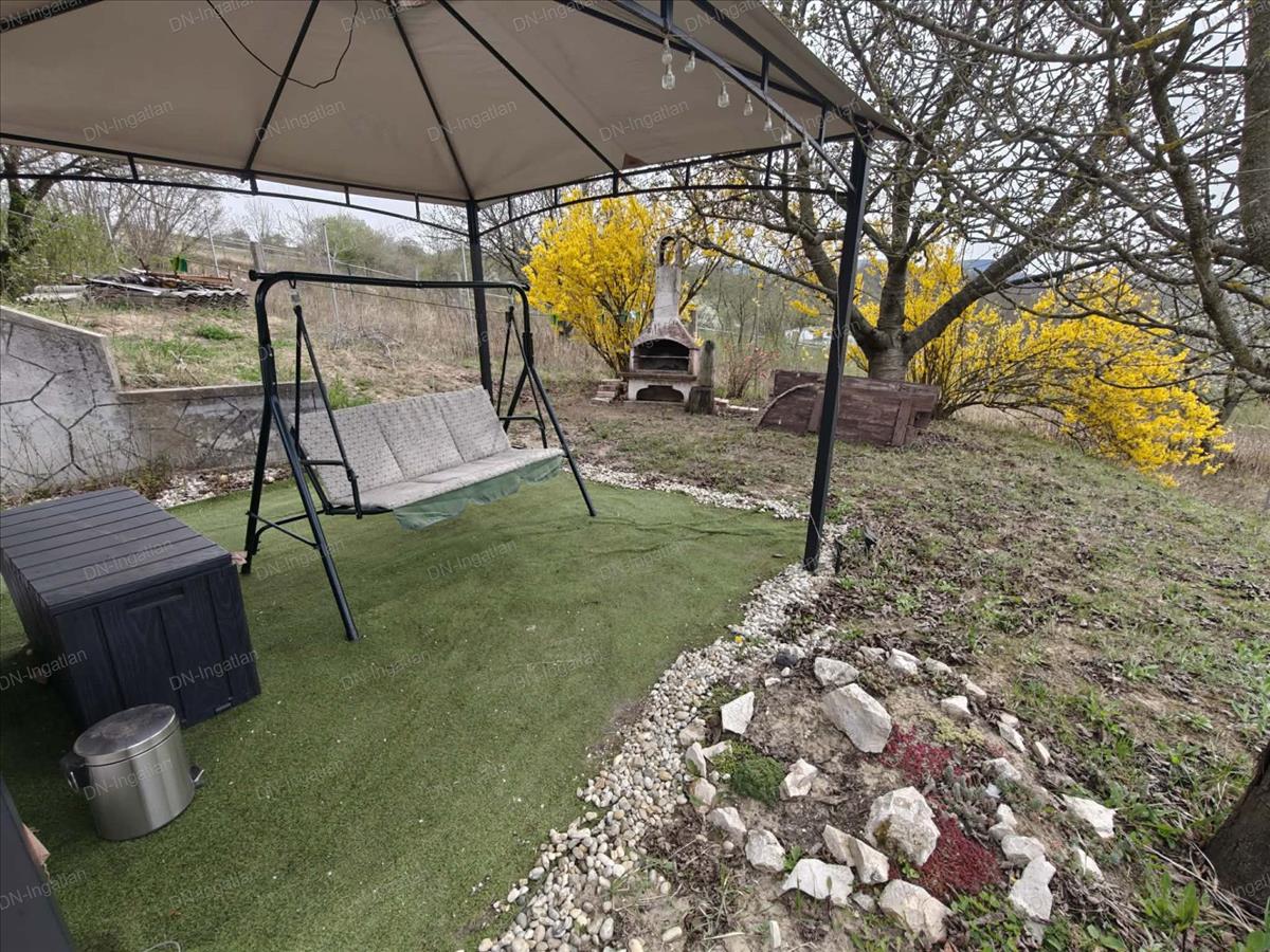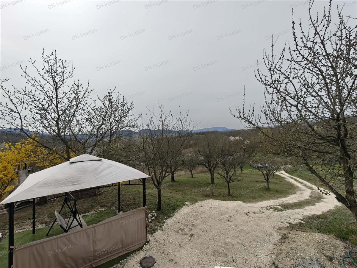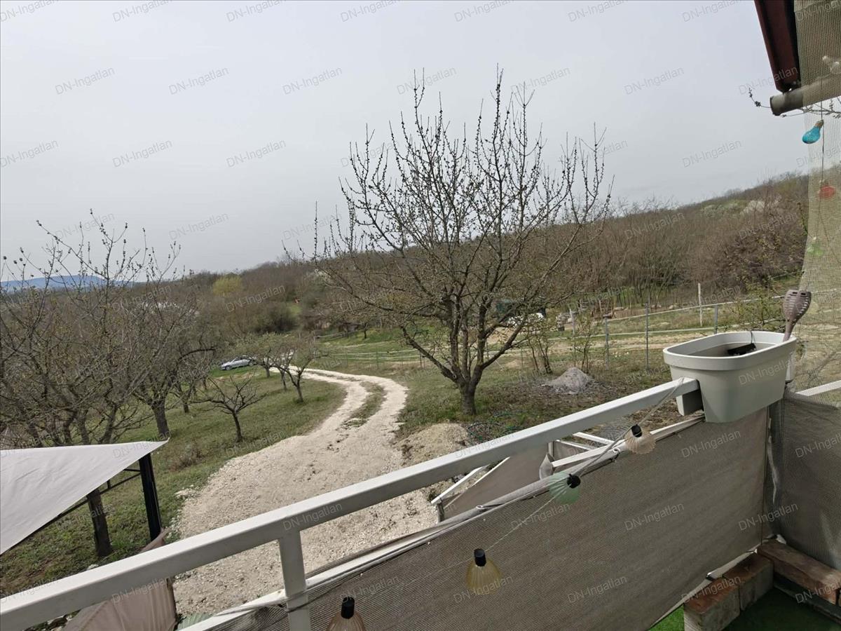 A telek téglalap formájú, körbekerített, szépen gondozott, kiválóan alkalmas konyhakert kialakítására, de pihenőkertként is remekül használható. Enyhén emelkedős, innen gyönyörű kilátás nyílik a szemközti hegyekre.