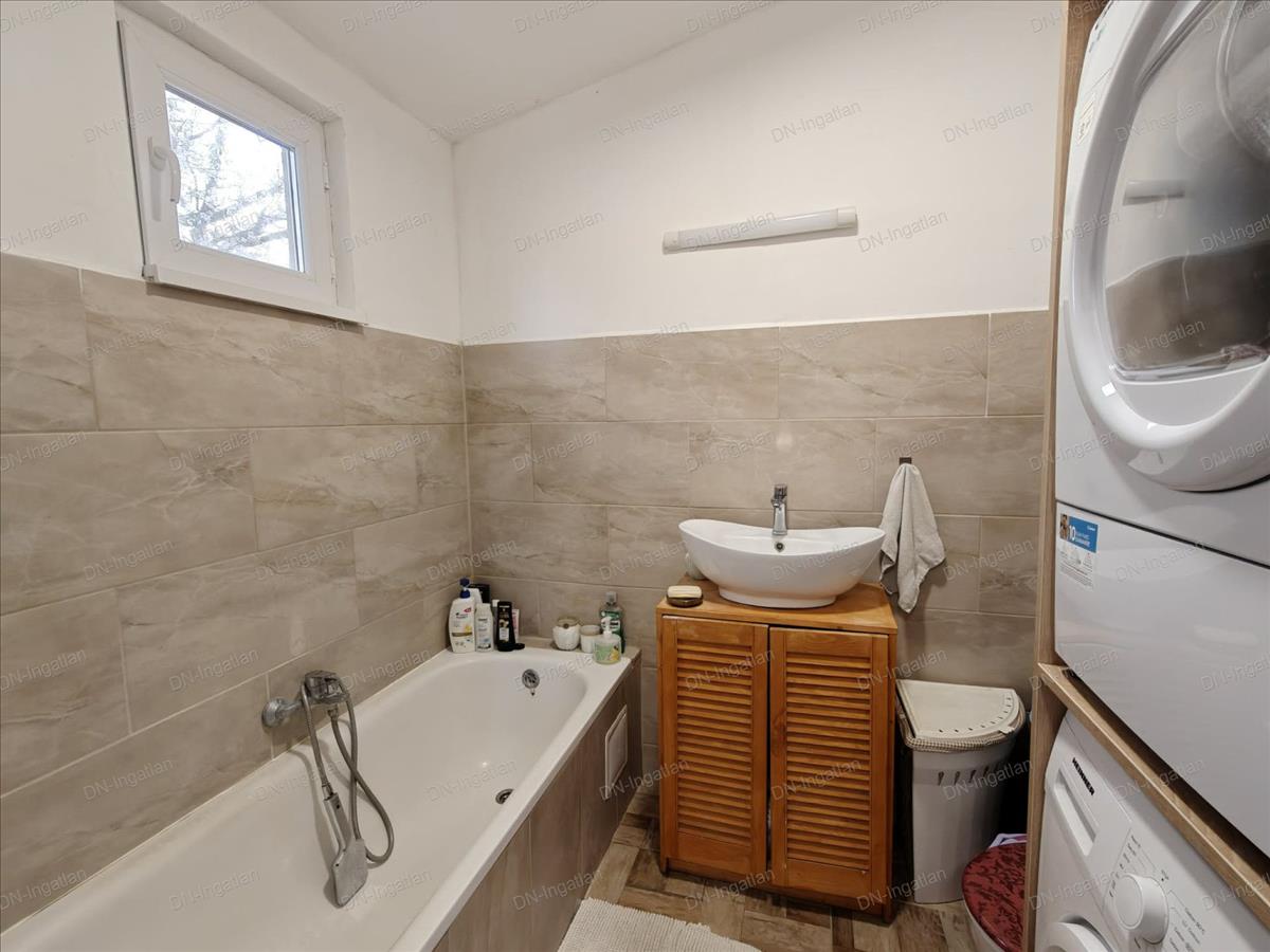 Kialakították a központi fűtést, mely vegyes tüzelésű kazánról üzemel radiátoros hőleadással. a nappaliban egy hangulatos elektromos kandallót is beállítottak. a meleg vizet villyanbojler szolgáltatja.