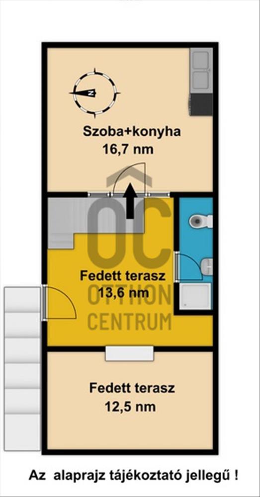 Lakótér: 1 szoba konyhával (16, 7 m²)