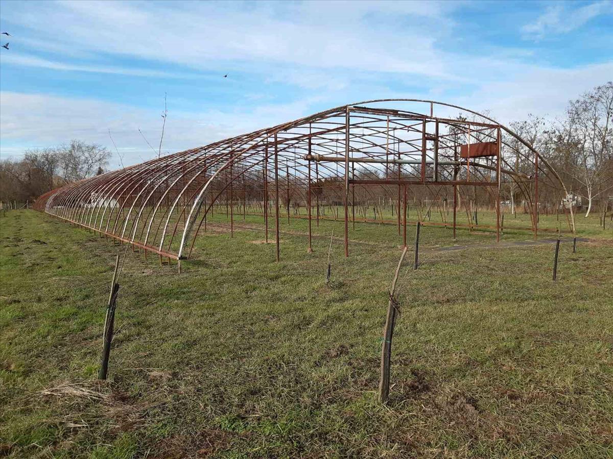 - Több gazdasági épület és egy 80 m hosszú, 15 m széles masszív fóliaváz található a területen.