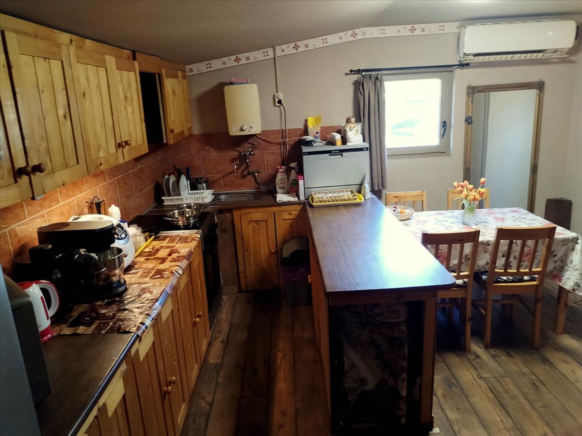 A telken található 40 m²-es nagyobb faház kényelmes elrendezésű: konyha, nappali, két szoba és fürdőszoba kapott benne helyet. a nappali egy éve került hozzáépítésre, amely jelenleg további befejezést igényel, így az új tulajdonos saját ízlésére formálhatja. a 18 m²-es kisebb faház különálló, egy szobából és egy kisebb előtérből áll, a wc jelenleg kívül található, de igény esetén könnyen átalakítható, hogy a házból is megközelíthető legyen. Mindkét faház szigetelt, így nemcsak nyaralóként, hanem akár állandó tartózkodásra is alkalmas. a fűtés hűtő-fűtő klímával megoldott, minden helyiségben található klíma, így az ingatlan télen és nyáron is komfortosan használható. a nyílászárók műanyagból és fából készültek.
