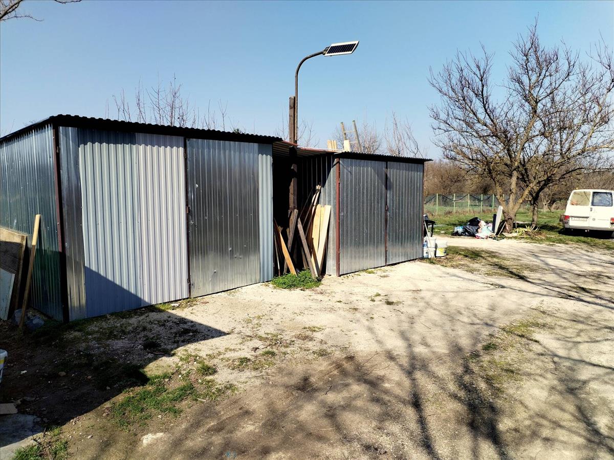 A telken további hasznos építmények találhatók: 22 m²-es fedett beálló, valamint két lemezgarázs (10 m² és 12 m²).