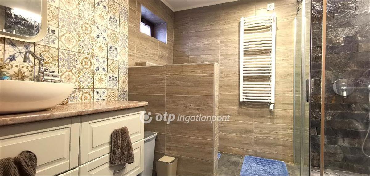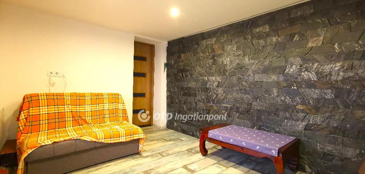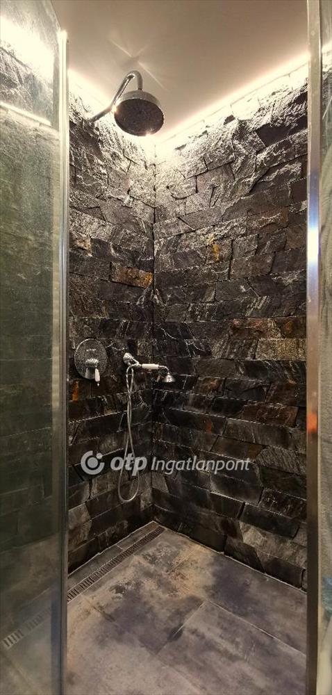 Az alsó szinten került kialakításra a zuhanyzós fürdőszoba és egy közlekedő, mely szobának is használható. a felső és alsó szint között belső közlekedés nincs kialakítva.
