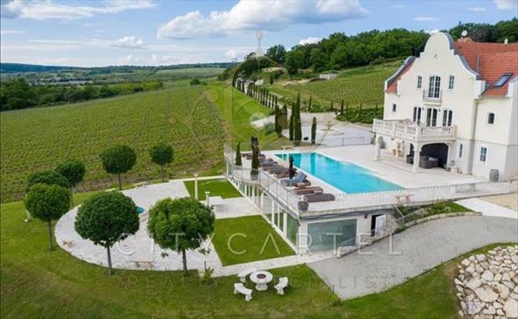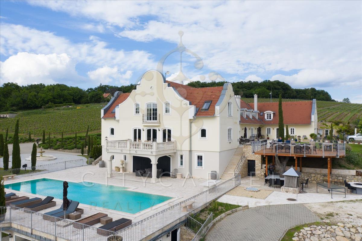 FESTŐI környezetben, a Balatonhoz közel kínálok eladásra egy francia Chateaux stílusban megépített, eklektikus, csodálatos panorámás, 2250 nm alapterületű, felújított, 3 szintes, 9 szobás borbirtokot a hozzá tartozó 10 hektárnyi szőlőtermő területtel!