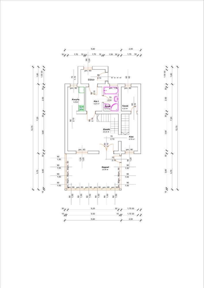 Földszinten: előtér, nappali, étkező, konyha – egy légtér, ahol együtt lehet a család.