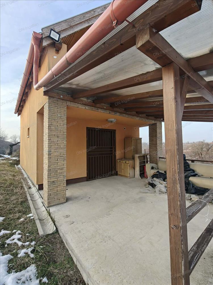 A terület enyhén emelkedős, gondozott, de nincs körbe kerítve. a középső részen egy 30 nm alapterületű, két szintes épület áll. a házba a teraszon át jutunk, melyen fa szerkezetű polikarbonát fedés van.  Az alsó szint egy légterű, folytatásában egy kb 3x4 méteres boltíves borospince húzódik. a felső szinten található szoba egyik sarkában alakították ki a konyhát, a szemközti oldal az erkélyre nyílik. Innen a bajóti Öreg-kőre látunk.  a ház 2013-ban épült, jó állapotú, egy kisebb ráfordítással hosszabb távú tartózkodásra is alkalmassá tehető. a vizet fúrt kútból nyerik, melyet a házig becsöveztek, azonban fürdőszobát nem alakítottak ki, igény szerint ez a leendő tulajdonos feladata. Villany van, 16 Amper áll rendelkezésre, melyet földkábellel vezettek be a házba.