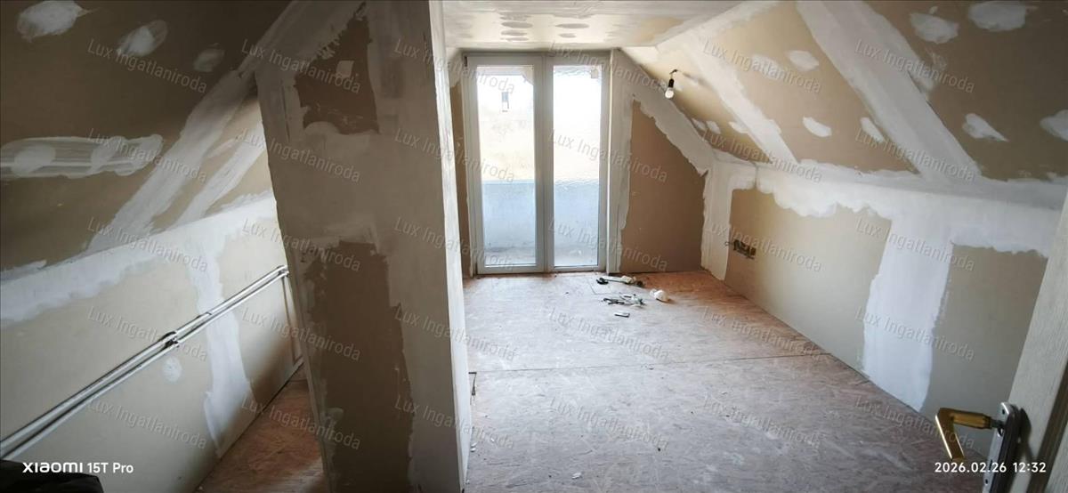 A felső szint szerkezetileg elkészült, befejezése (burkolás, festés) már az új tulajdonos elképzelése szerint folytatható.