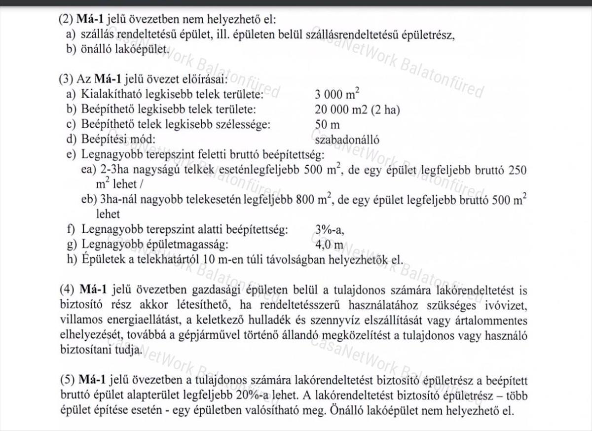- Má1 besorolású terület, melyre az alábbi beépítési szabályok vonatkoznak: