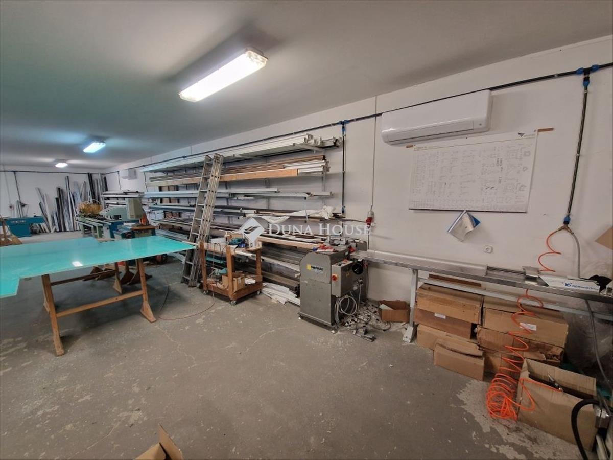 Nemesnádudvaron eladó az 54-es főútról megközelíthető 416 m2-es ipari ingatlan (üzemcsarnok és telephely) 4998 m2 telekkel. ~2004-Ben épült újonnan kialakított belterületi ipari övezetben egy 38, 5m x 129m-es összközműves telken, melynek végében akácos található. a főútról egy 6 méter széles aszfaltozott útról közelíthető meg közvetlen csatlakozással. Az ingatlan előtt mintegy 7 személyautónak alakítottak ki parkolóhelyet a látogatók, vásárlók számára. a telephelyre belépés elektromos kapun keresztül lehetséges. Az épület monolit vasbeton pillérvázas egyszintes nyeregtetős 38 cm-es Porotherm tégla kitöltőfalazattal, acél tetőszerkezettel, melyet Lindab tetővel fedtek. a külső Baumit nemes vakolattal ellátott. Belül 3 méteres magassággal, acél tartószerkezetre szerelt gipszkarton mennyezetet alakítottak ki. Az épület lényegében két egységre tagolható: a bemutatóterem, iroda és szociális helyiségek elöl, illetve az üzem/raktár hátul. Első rész: bemutatóterem (63 m2), iroda (16 m2), mosdó (1, 35 m2), wc (1, 25 m2), közlekedő (2, 85 m2), piszoár (1 m2), wc (1, 3 m2), konyha-étkező (8, 5 m2), öltöző (2, 7 m2), zuhanyzó (2, 5 m2), valamint kazánház (raktár, 2 m2). a csarnok világos, nagy ablakokkal, valamint 2 db, egyenként 3 méter széles bejárattal rendelkezik. Az aljzat műgyantázott vasbeton, mely targoncázható. Teljes területén néhány méterenként kialakításra kerültek levegő és 380-as csatlakozási pontok. Az eredetileg festék és hasonló anyagok tárolására tervezett raktár az udvarról nyílik. Ezen előírásszerűen acél keretbe foglalt copilit üvegezés található (hasadó-nyíló felület), valamint a padozata is szikramentes. Bármely egyéb anyag/termék tárolásra is kiválóan használható. a teljes épületen néhány évvel ezelőtt lecserélték a nyílászárókat korszerű és minőségi hőszigetelt műanyagra. a teljes területen takarékos és nagy fényerejű led világítás került beépítésre. a villamos hálózat 3*65a, mely bőségesen elegendő bármely tevékenységre. a fűtés az üzem részen gázkonvektoros, valamint emellett 2 db 5, 5 kW-os Midea hűtő-fűtő klíma is rendelkezésre áll. Az első részen a kialakított radiátoros központi gázfűtés (24 kW-os gázkazán) mellett szintén felszerelésre került egy hűtő-fűtő klímaberendezés is. a meleg vizet villanybojler állítja elő. Vállalkozások számára ideális, számtalan célra kiválóan hasznosítható fiatal, újszerű ingatlan. Kifizetés után megbeszélés szerint birtokba vehető. Érdeklődés esetén keressen bizalommal, nézzük meg együtt! Hitel.hu - Hasonlítsa össze a bankok lakáshitel ajánlatait