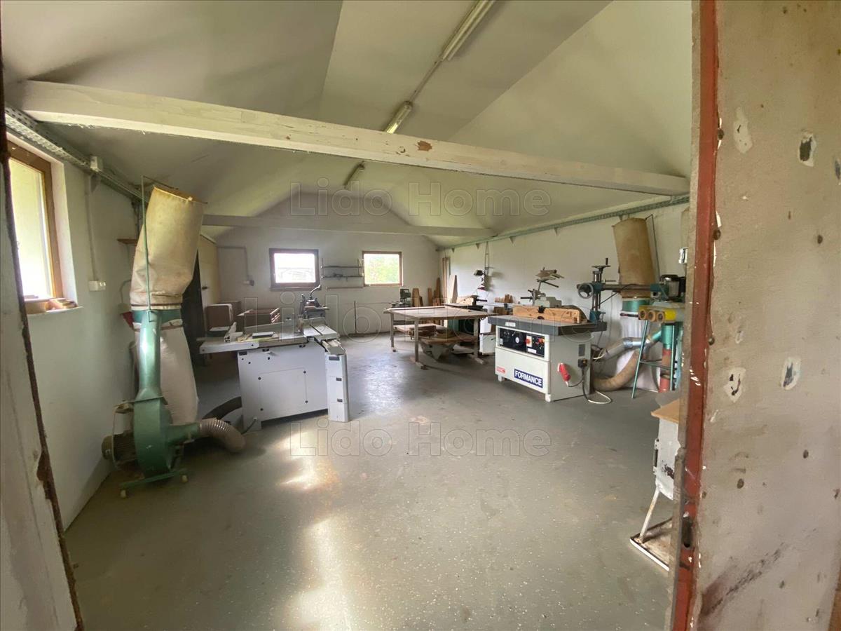 -Az asztalosműhely a telek hátsó részén helyezkedik el, 160m2-es, 3 részből áll. Amelyek egymásba nyílnak, valamint a dolgozók részére külön zuhanyzó, wc található.