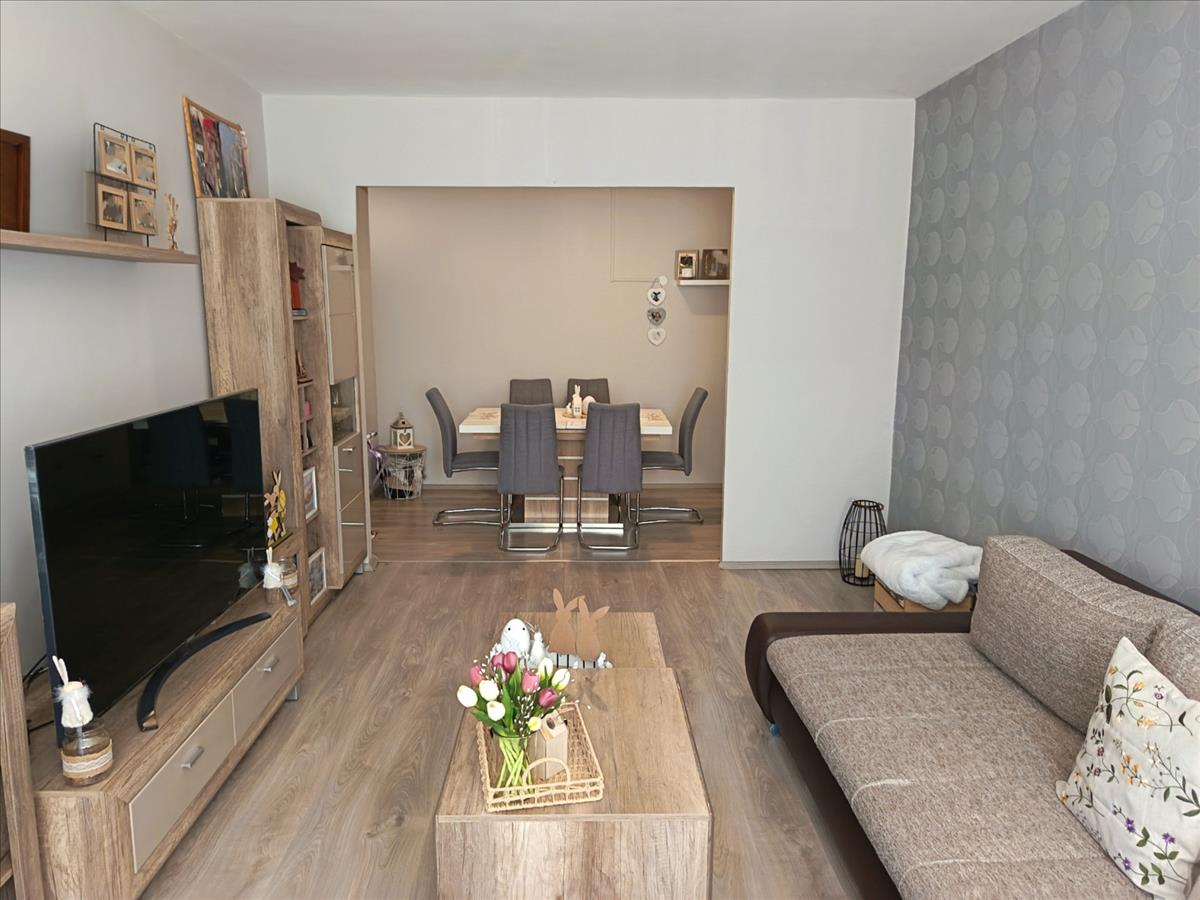 Az eladó lakás helyiségei: előszoba, nappali étkezővel, két nagyméretű szoba, konyha, fürdőszoba, külön wc és közlekedő. Az otthon komfortját műanyag nyílászárók, egyedi mérős házközponti fűtés, valamint az étkezőben elhelyezett hűtő-fűtő klíma biztosítja. a lépcsőház kamerarendszerrel felszerelt, a lakáshoz pedig külön pince is tartozik.