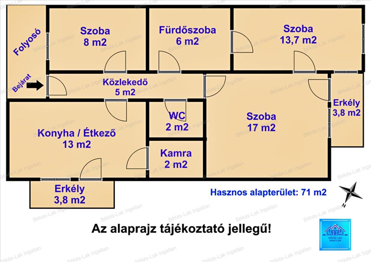 Eladó egy gyönyörű, jó állapotú panellakás Békés belvárosában, mely ideális választás lehet családok vagy fiatal párok számára. a 71 négyzetméteres ingatlanban két tágas szoba és egy félszoba valamint két erkély található, így elegendő teret biztosít a kényelmes életvitelhez. Az épület csúsztatott zsalus vasbeton technológiával készült, amely hosszú élettartamot és stabilitást garantál.