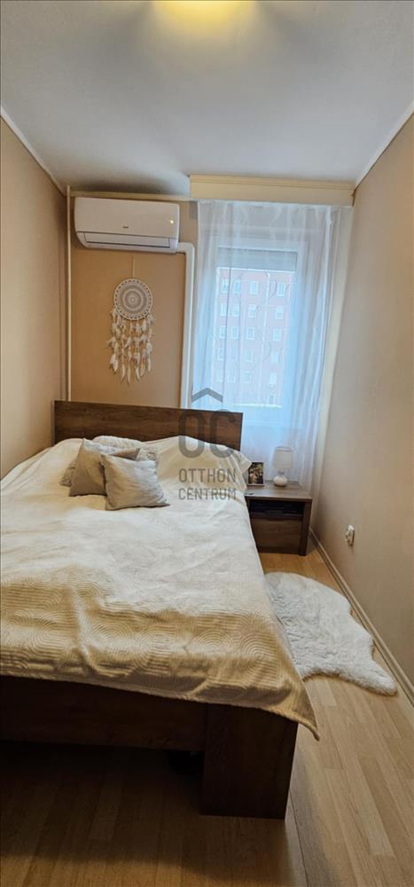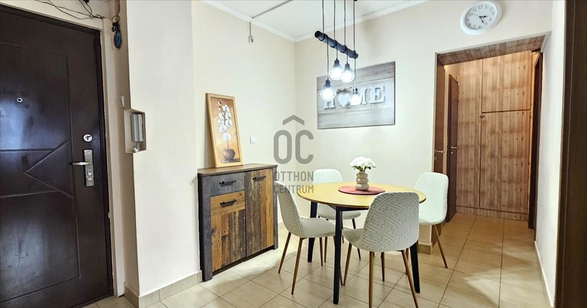 6. emeletén egy 56 nm-es 1+2 félszobás, nagy étkezős szép állapotú francia erkélyes lakást.