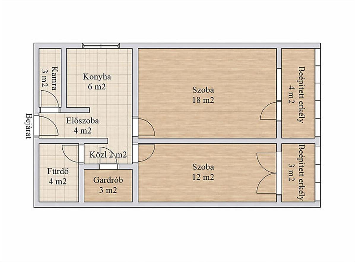 A fürdőszoba mellet egy gardrób, a konyha mellett pedig egy kamra is található.