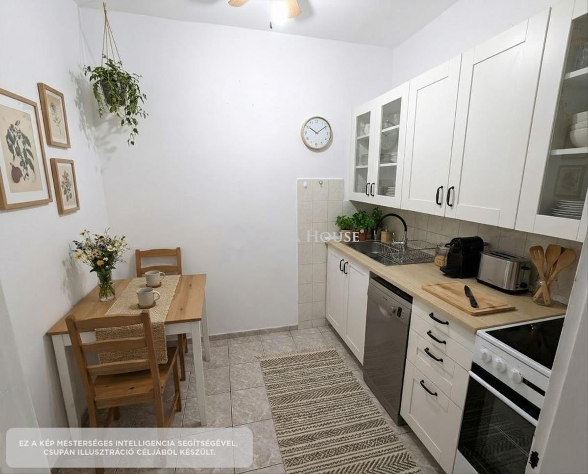 A berendezett helységek képei illusztrációk, a lakás jelenleg bútorozatlan, kivétel a konyhabútor, ami a vételár részét képezi.