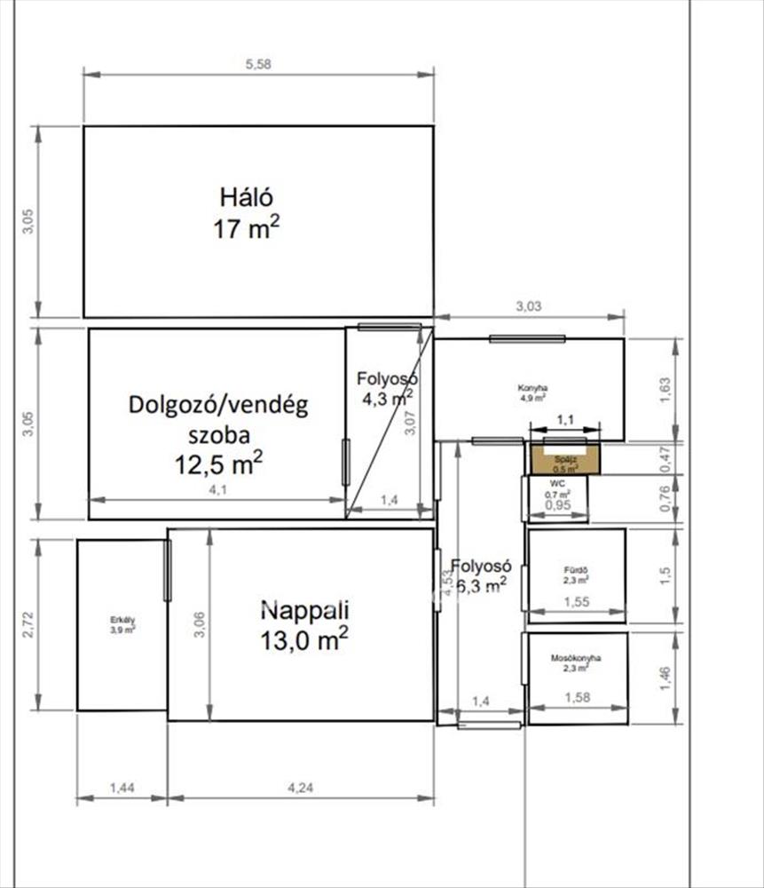 - Elosztás: 3 különnyíló, tágas szoba + modern konyha + fürdőszoba + külön wc + közlekedő
