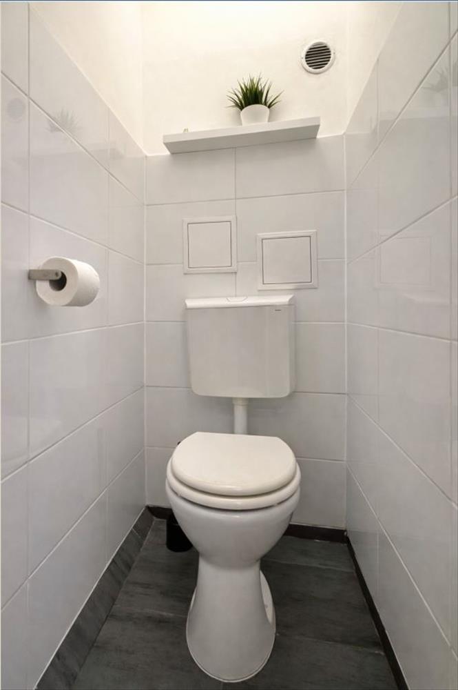 Külön nyíló fürdő és wc, szintén felújítva, új szaniterek és burkolat