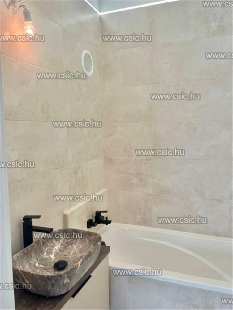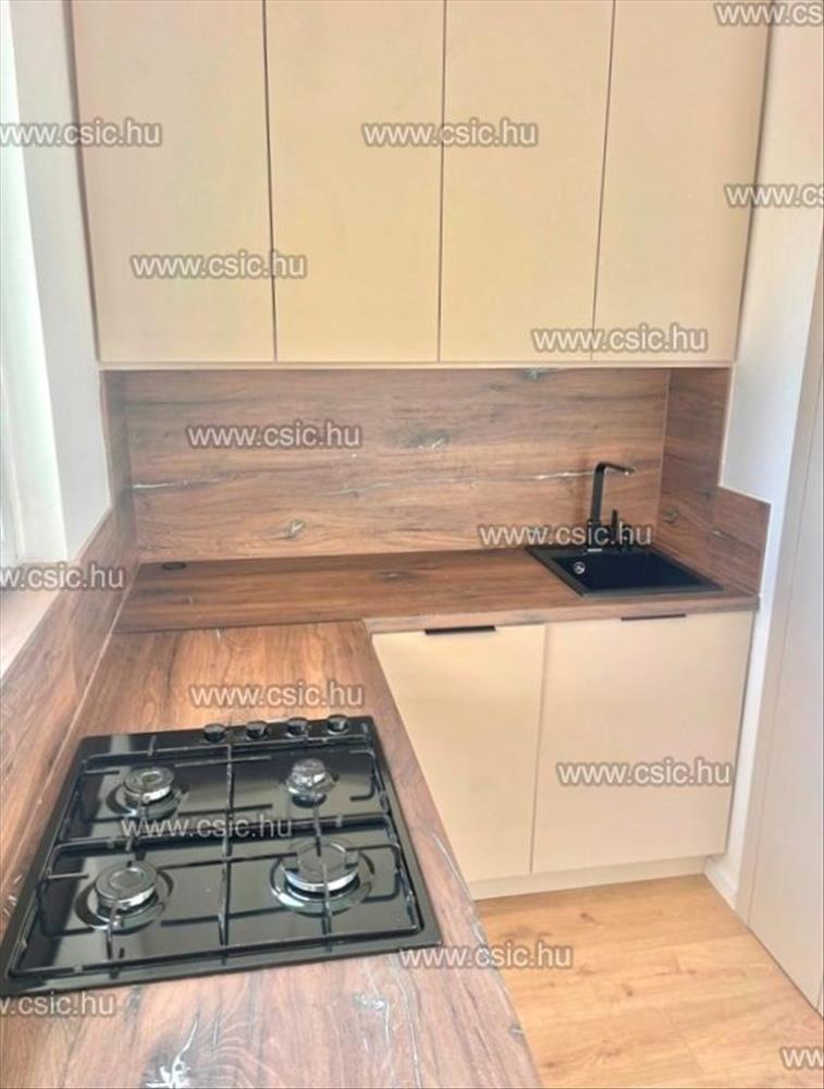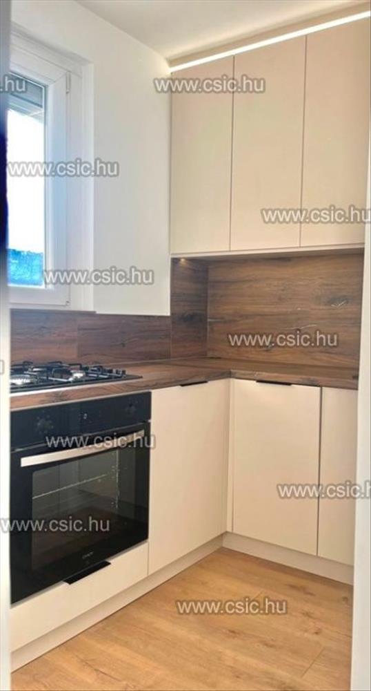 A konyha egyedi tervezésű szatén színű, gránit mosogatóval, beépített konyhai gépekkel, led világítással. a konyhában egy praktikus, ajtóval ellátott kamra van. Led világítás a fürdőszobában is működik. a bejárat melletti gardróbba bevezették a mosógép kiállását, tetszés szerint akár oda is lehet tenni a mosógépet. a beltéri ajtókat új ajtók váltották fel. Erkélyes, (4m2).