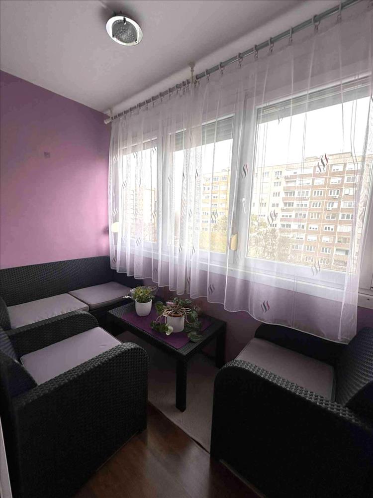 Eladó Budapest, 3. kerület, Békásmegyer Duna felőli oldalán egy felújított, 50 nm -es, 2 szobás, 6 nm -es beépített erkéllyel rendelkező, 6. emeleti panellakás.